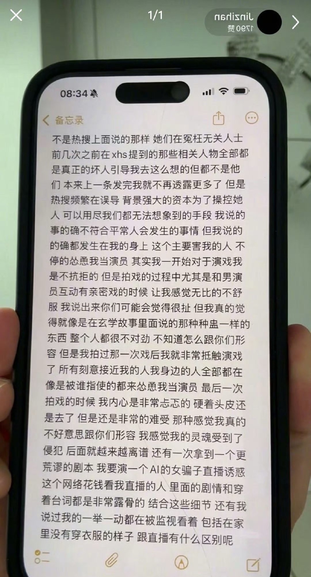 3. 拍戏时因亲密戏产生强烈不适,说身边人指使怂恿她当演员。