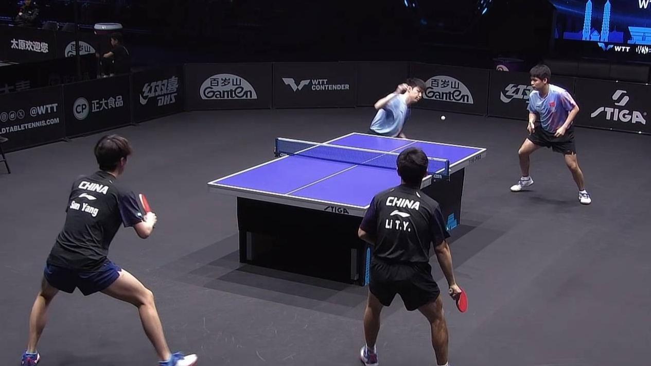 北京时间4月9日,WTT太原常规挑战赛,男双1/8决赛,林诗栋/黄友政对阵孙杨/李天阳。