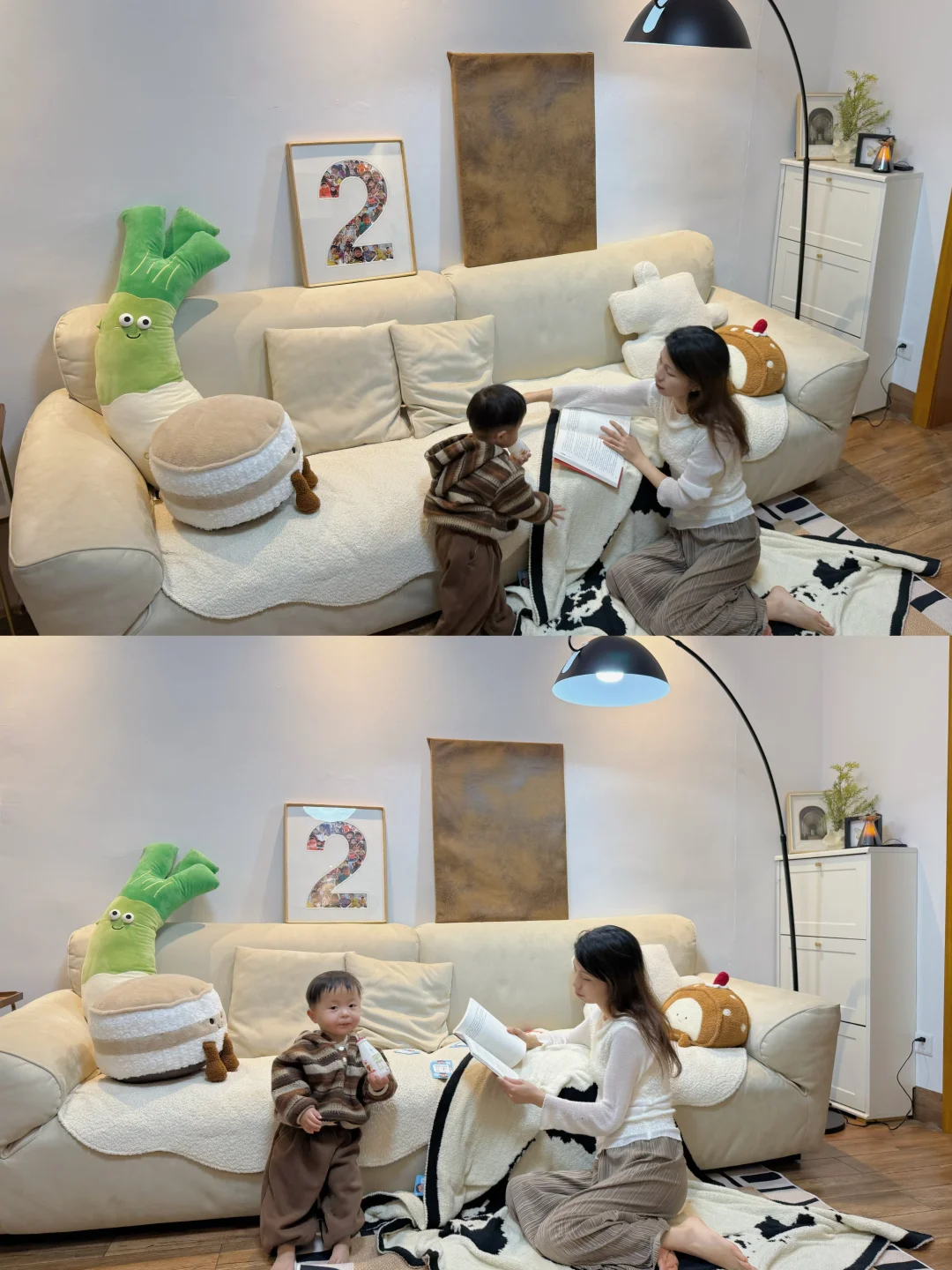 不管是拍素材时补光,还是窝在沙发陪他玩