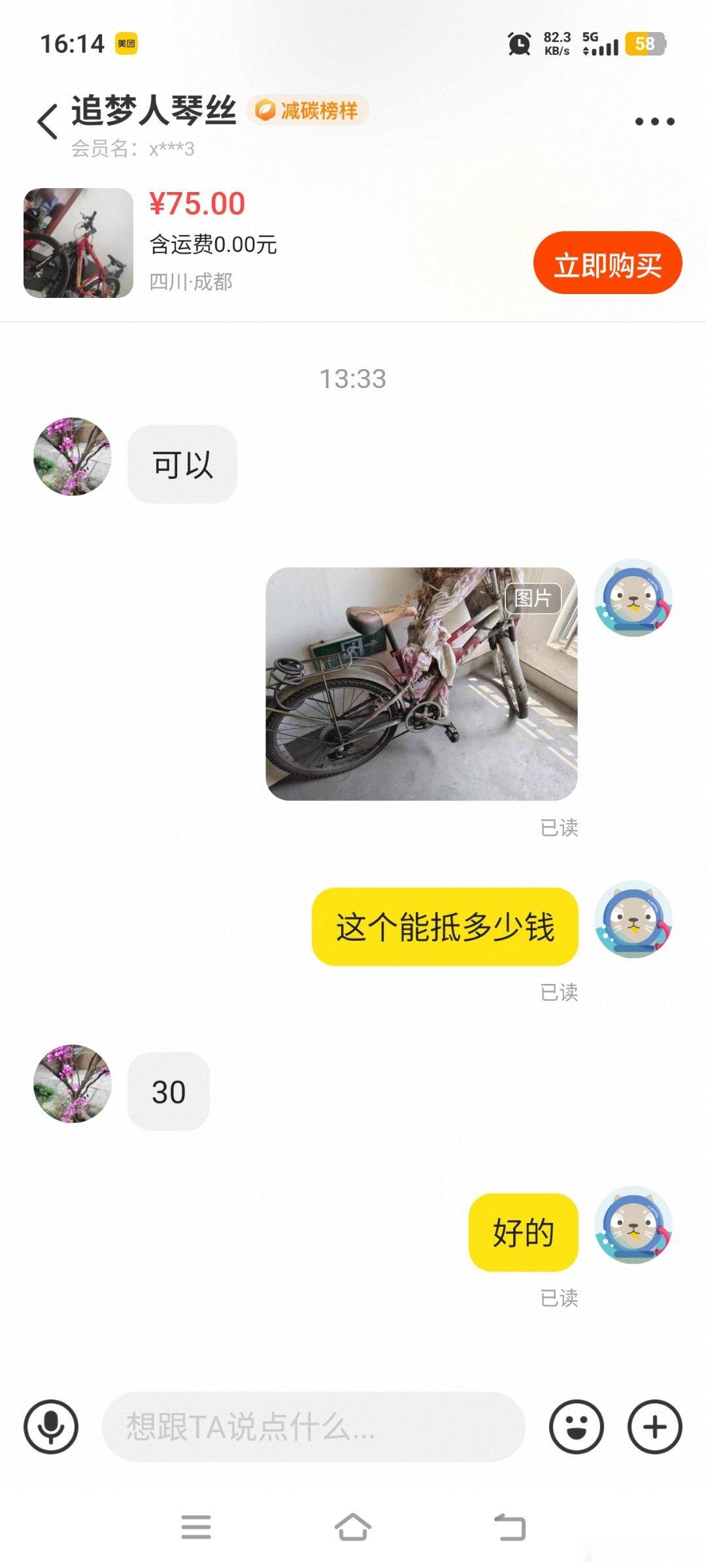 《自行车》自行车并不是摩托车电瓶车,并不会自行,是人驱动车成全一加一大于二的聚合。和油车无缘,只能腿蹬,快感越强越容易放纵越需自律,我还是只适合自力更生的小爽。这辆十几年前买的二手红苹果,陪我走南闯北穿风破雨几年,又尘封十几年,一直舍不得卖掉。敝帚自珍,珍惜的并不是敝帚,而是那些陪伴的时光和奋斗的记忆。今天准备带它出门,开启新的旅程,换一辆更结实的二手车,只要不去废品站,也算给老战友一个好交代。这么多年没骑,充上气居然还能正常使用,胎没坏,链没绣,臀座弹性十足,坐垫稍微生硬硌人,跑十几公里不吃力,人车合一,归来仍有少年雄风,不输满大街新潮艳丽的共享单车。五十块钱买的,十几年了还能抵三十块,老板说七八十卖出去,看来还升值了,以后它再也不用在墙角寂寞,又可以出去看世界,花红柳绿中风光无限。“新车”不是新车,也可以喜欢,也是别人的旧爱。时间花在这些不值钱的事上,有点虚度光阴的感觉。虽说时间宝贵,但很多人的时间都没法金钱化,价值感则因人而异,有人喜欢算计大名大利,有人执着小恩小惠,鲸鲨有鲸鲨的生存之道,鱼虾有鱼虾的生计。挽起灯火,错过星河,仰望星河,错过灯火,都圆也都缺,都对也都错。