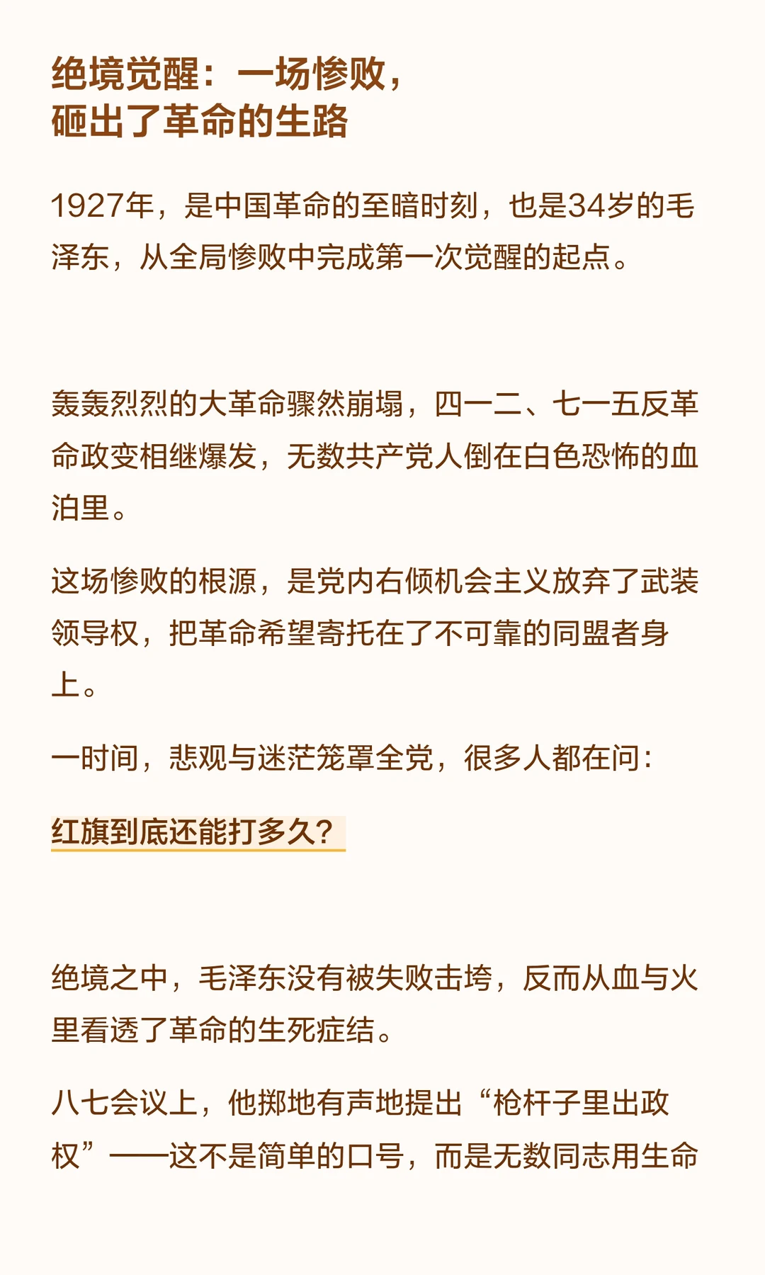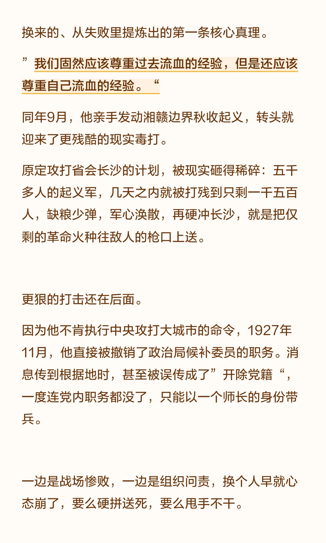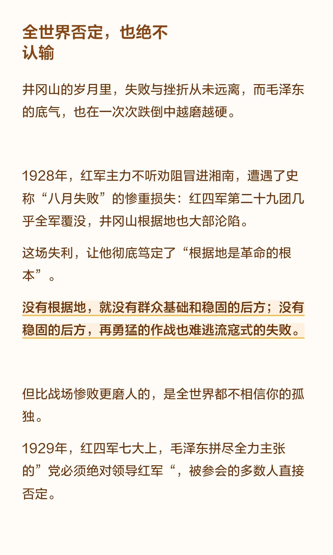 毛泽东从失败中提炼真理,带领中国革命走向胜利。