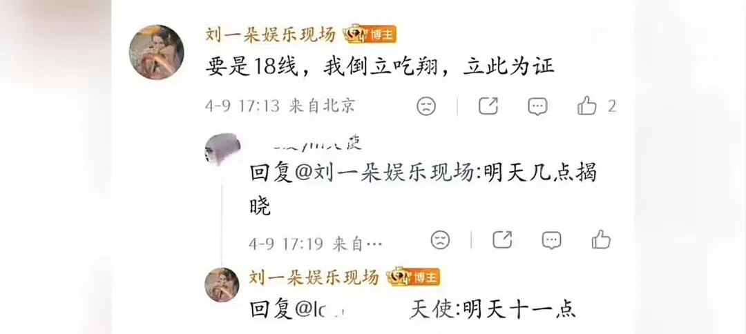 明天有大瓜,两对顶流分手,一对90后、一对95后。刘大锤发誓,要是是十八线小明星就倒立吃屎。