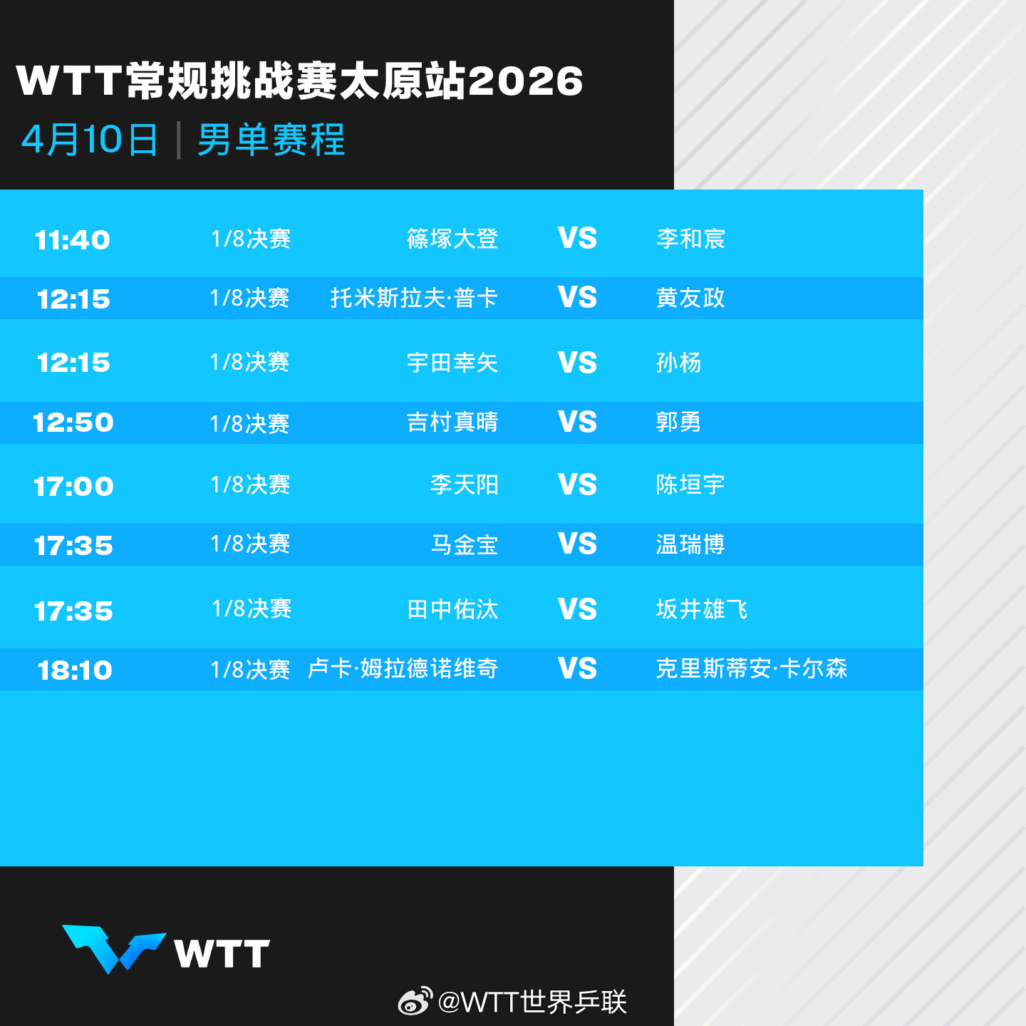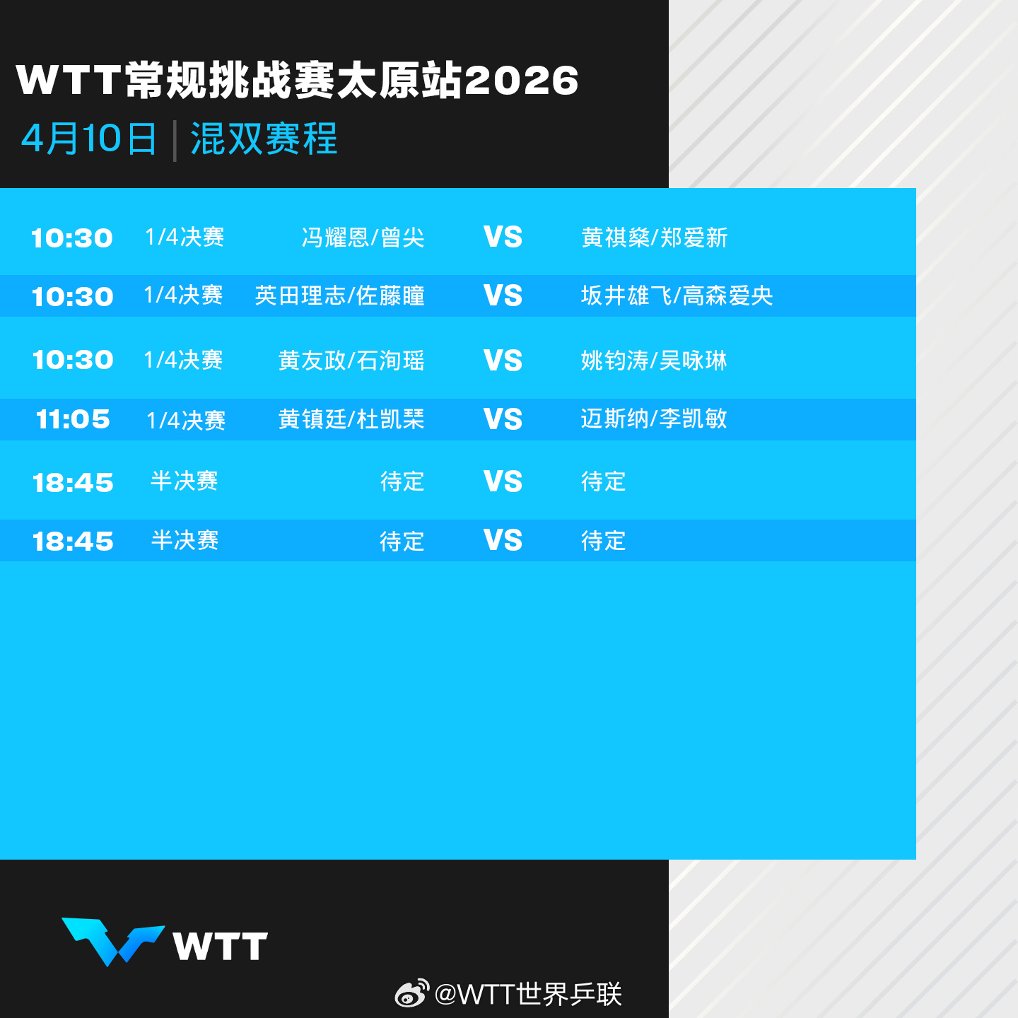 #WTT太原站4月10日赛程#