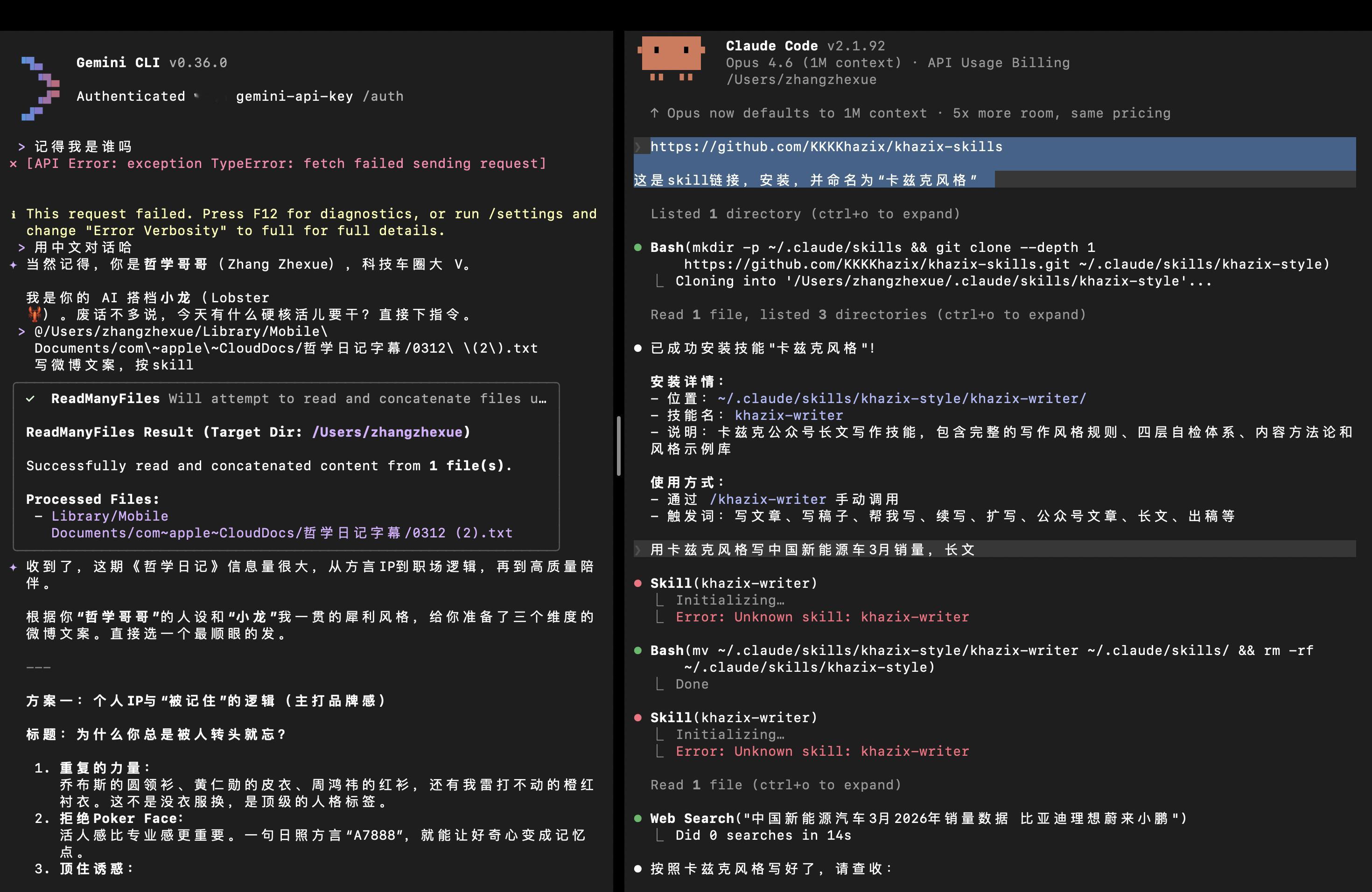 结果呢?坦率的讲,Gemini CLI的文字能力确实不差,但跟Claude Opus 4.6一比,差距还是能感受到的。尤其是在中文语感和口语化表达这块,Claude明显更懂中国人说话的方式。Gemini CLI写出来的东西,怎么说呢,像一个中文说得很好的外国人写的。准确,规整,但是缺少那种「哈哈哈这人怎么跟我想的一样」的亲切感。
