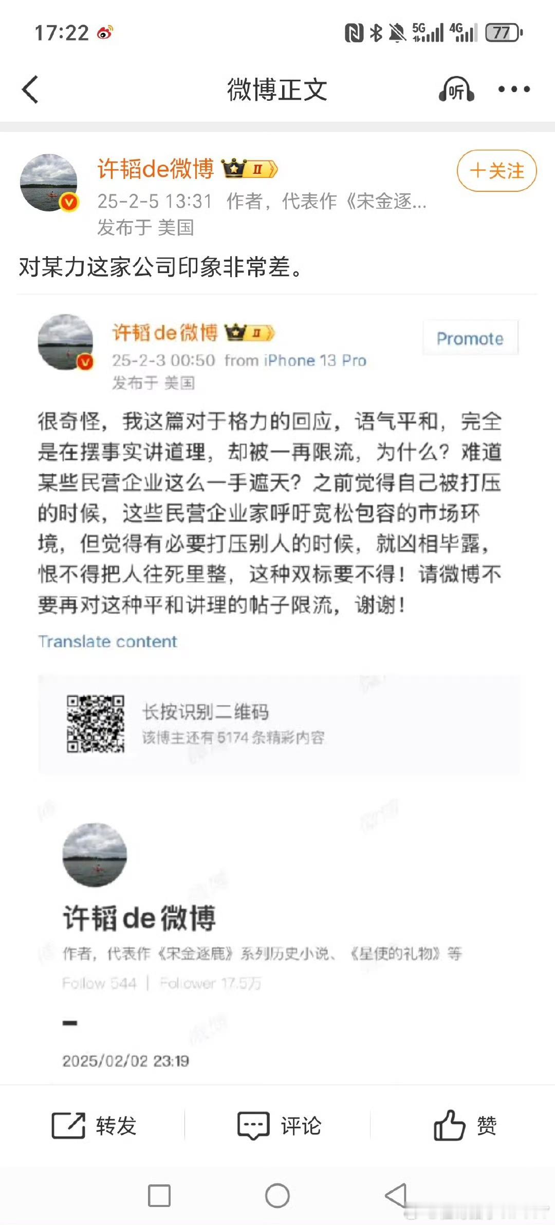 热点推了个这个 还别说早忘记了,这个原来是个造谣格力的谣棍号。美国IP。