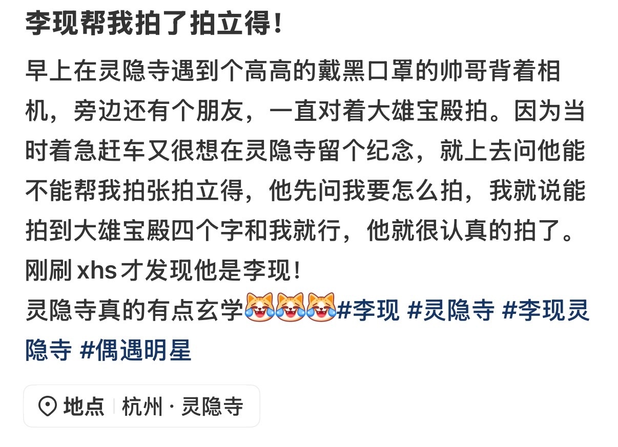 李现帮我拍了拍立得李现灵隐寺帮路人拍照完全独家记忆来的
