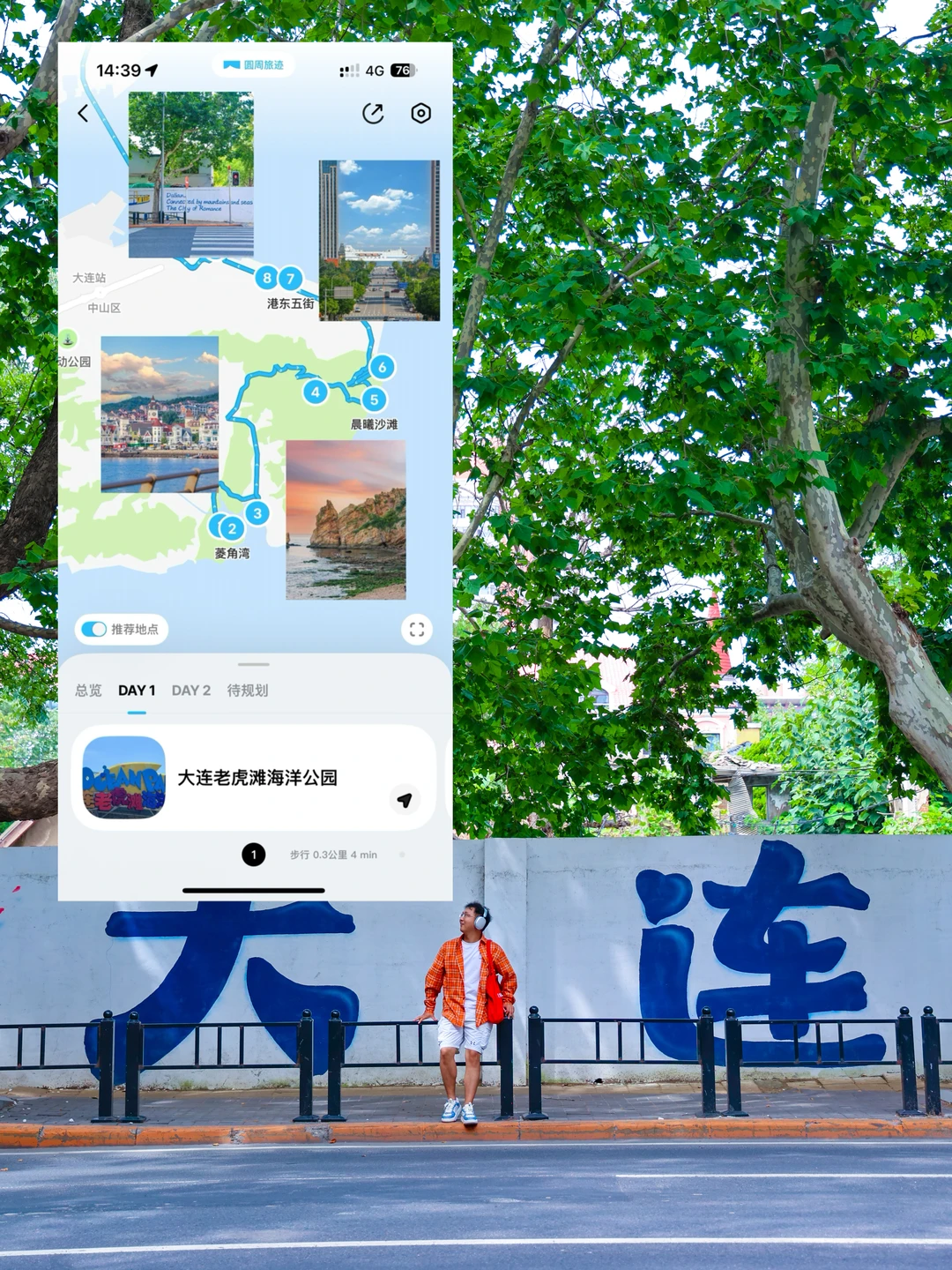 第1️⃣天:星海广场-星海跨海大桥-银沙滩-付家庄公园-海之韵公园-老虎滩海洋公园-菱角湾