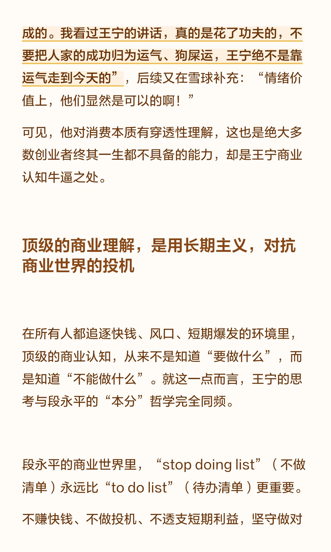 他公开认可的企业家,无一不是对商业本质有穿透性理解、坚守长期主义、恪守“本分”。