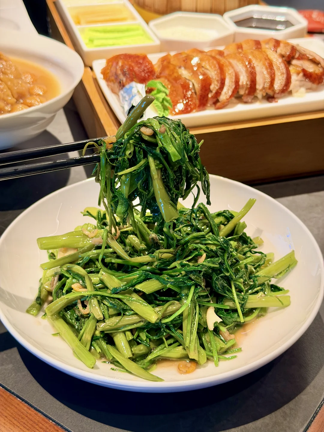 作为爱吃通菜的港漂,对这道真的太有要求!通菜新鲜脆嫩,大火快炒后保留了爽脆口感,咸鲜入味不油腻,解腻又下饭,搭配重口的烤鸭和狮子头吃,刚好平衡整桌的风味,妥妥的家常江南味~