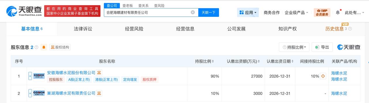 天眼查App显示,近日,合肥海螺建材有限责任公司成立,法定代表人为程小兵,注册资本3亿人民币,经营范围包括水泥生产、水泥制品制造、新型建筑材料制造、轻质建筑材料制造、水泥制品销售、建筑材料销售、集中式快速充电站等。股东信息显示,该公司由海螺水泥(600585)及旗下巢湖海螺水泥有限责任公司共同持股。