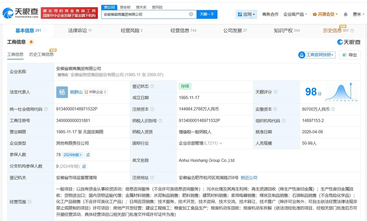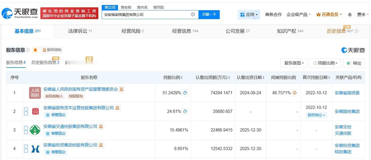 天眼查工商信息显示,近日,安徽省徽商集团有限公司发生工商变更,注册资本由约10.8亿人民币增至约14.5亿人民币,增幅约35%。