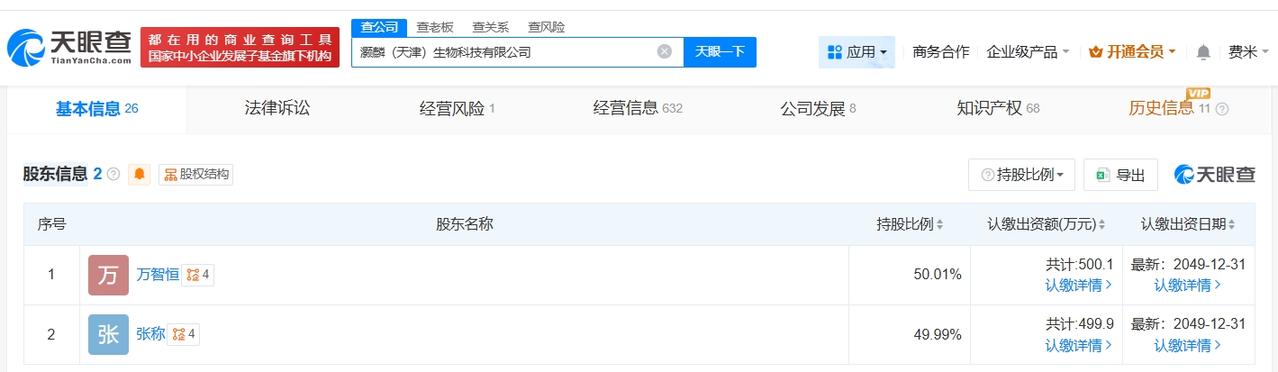 该公司成立于2019年6月,法定代表人为张称,注册资本1000万人民币,经营范围包括人体干细胞技术开发和应用、人体基因诊断与治疗技术开发、细胞技术研发和应用等,由万智恒、张称共同持股。