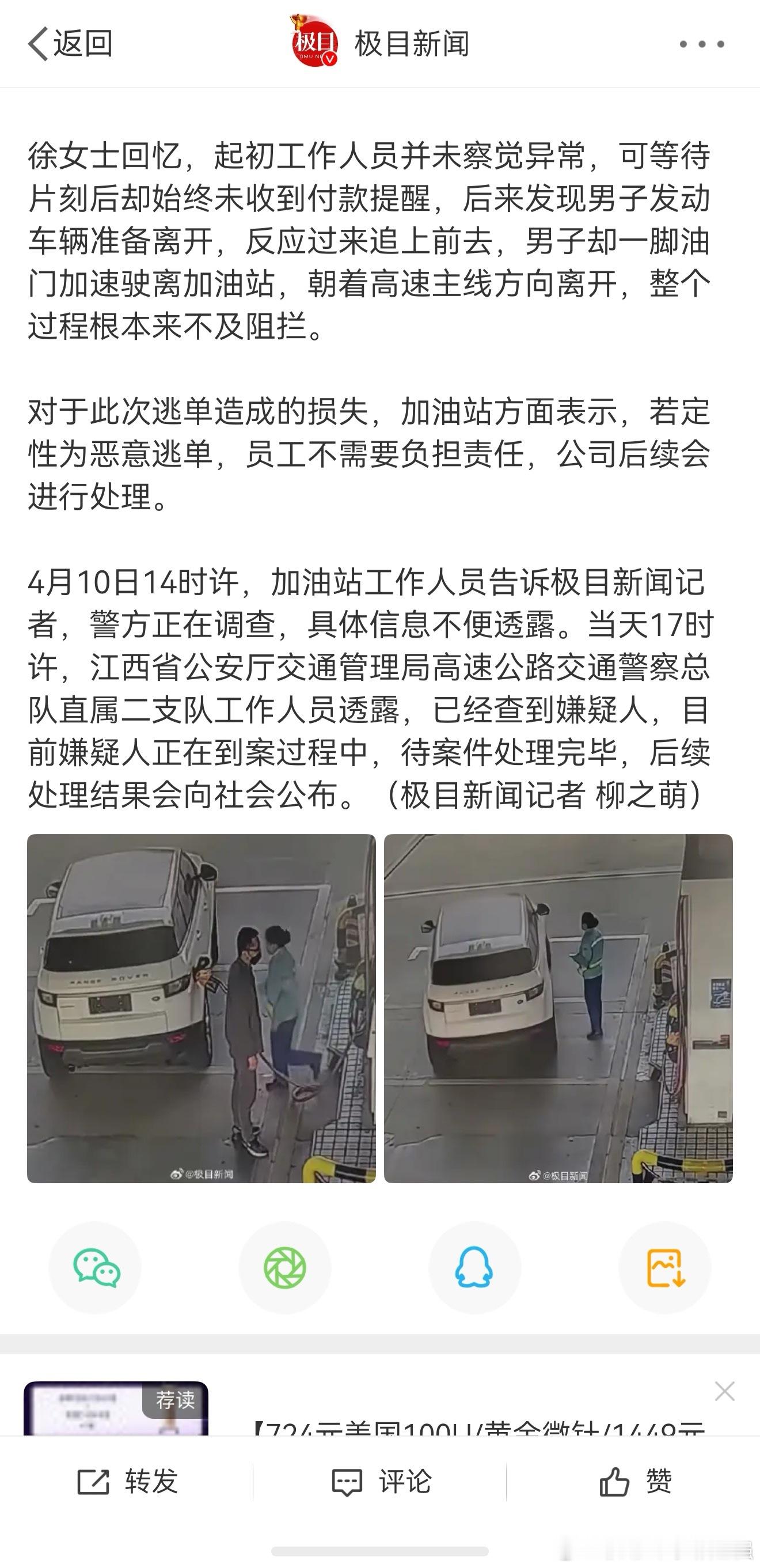 警方已查到路虎加500元油逃单嫌疑人 有点离谱了,啥年代了,还逃单。至于说路虎,