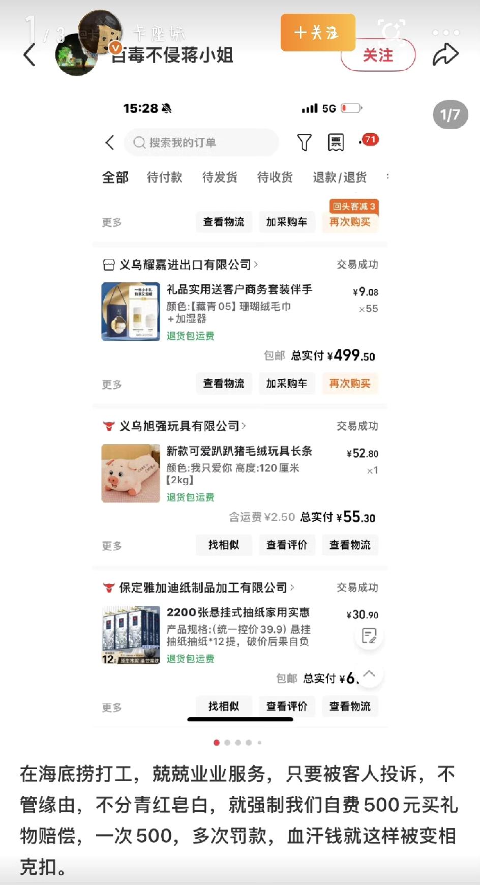 更离谱的是,这个罚款制度还挺“灵活”。顾客投诉了?罚。服务没到位?罚。有时候为了息事宁人,员工甚至得自掏腰包买贵重礼品去赔罪。有网友算了笔账:一个月工资就那么几千块,扣来扣去,最后可能还得倒贴钱上班。这哪是打工啊,这是做慈善吧?