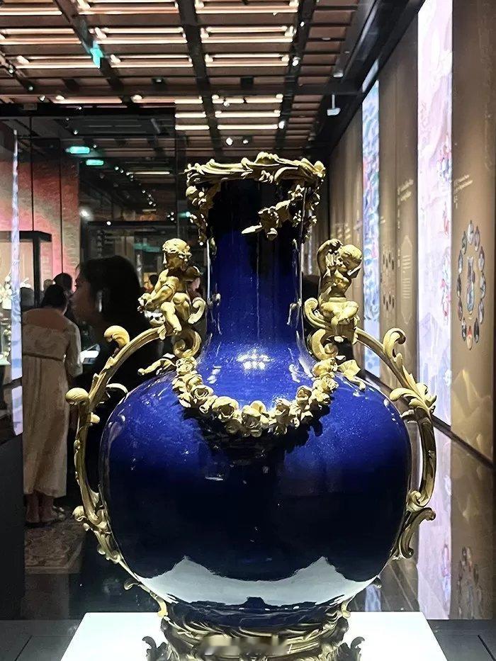 可以说这件蓝釉天球瓶(带西洋铜饰)的文物:不仅釉色罕见,色泽如蓝宝石般璀璨深耀;器型大也罕见;更是罕见的东西方文化的结合品,尤显珍贵。