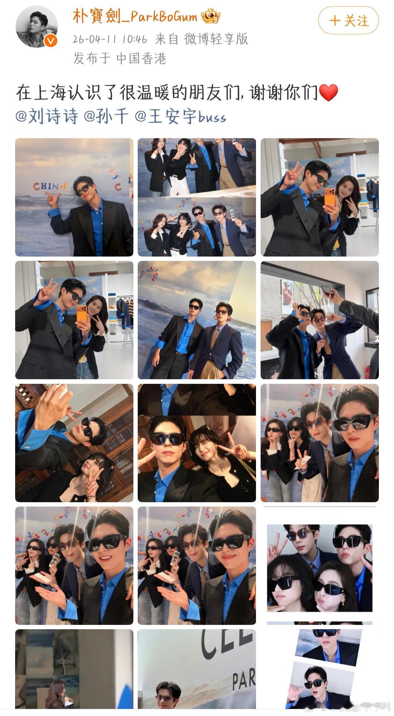 CELINE星光四人组氛围好好啊 刘诗诗 朴宝剑 王安宇 孙千celine