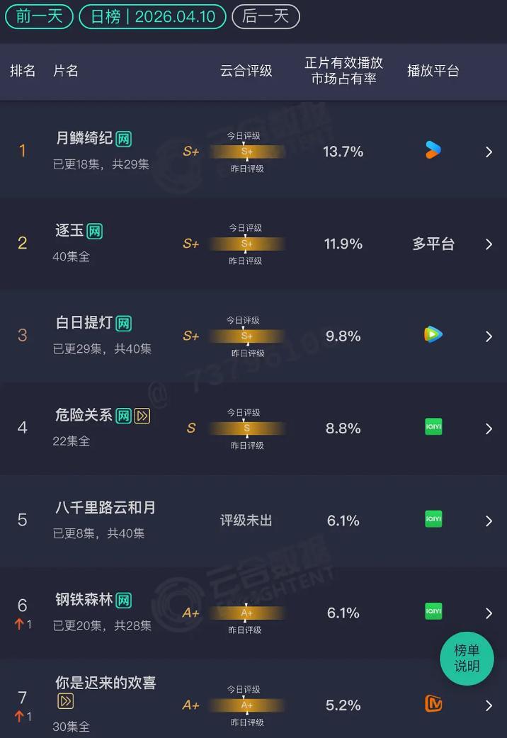4.10 云合冰湖重生:4.3%这个剧的播放都给人看呆了,S+古偶啊,各种宣传阵