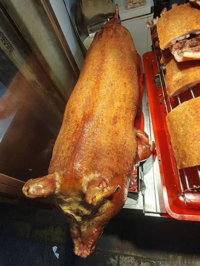 港人称内地烤猪为「合成猪」,评论区指贵过成猪近日,有港人在Facebook在「全港店舖执笠结业消息关注组」发布的照片显示,烧味舖摆的烧猪「有头有尾」,色泽金黄。其文称「合成猪」引发不少议论,有人反驳指:「合成猪重贵过成只猪。」「内地猪肉超便宜,不会合成。」不过亦有网民表示内地烧猪和香港烧猪味道不同,有人称:「大陆烧猪烧之前,片到肉好薄,腌料无香港那么浓。」也有人表示人各有爱:「你几时见到香港烧腊店会这么放 ,但各人有各人喜欢啦。」2025年就有港男发现「无骨烧猪」杀进香港烧味舖,售每斤88元,较内地价钱贵数倍。有吃开传统有骨烧猪的港人指出,「我见到无骨反而觉得怪怪地」,又担心是「合成肉」。不过当时的楼主就解释说,「无骨烧猪」是内地制法,烧制前已先将猪只的胸骨、头及手脚去除,随后将厚薄不均的部位放在半圆柱形铁架上,务求烧制时受热平均。粤港澳大湾区万物皆可丁达尔