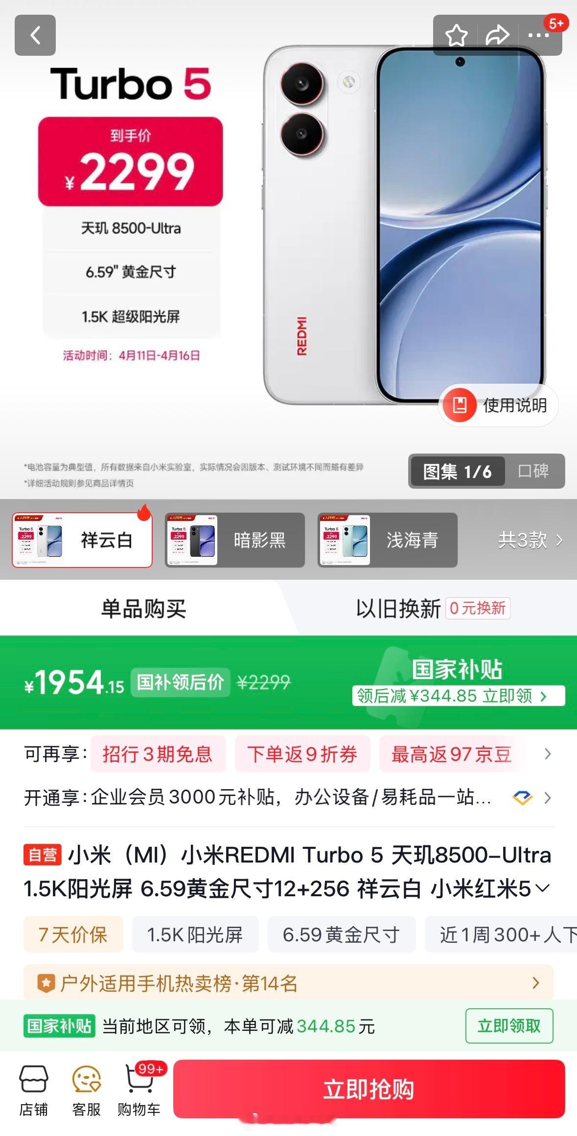 小米正式调价 4月11日今日起小米正式开始调价涉及红米三款机型看了下过年买的REDMI Turbo5,当时国补后是1699.15/现在1954.15~