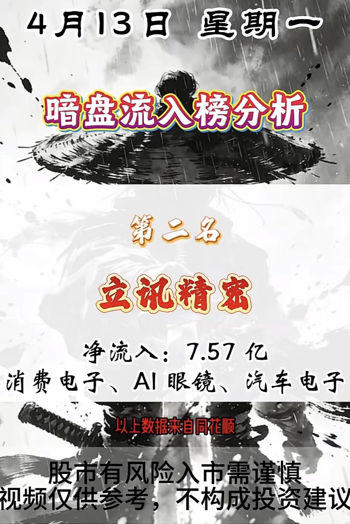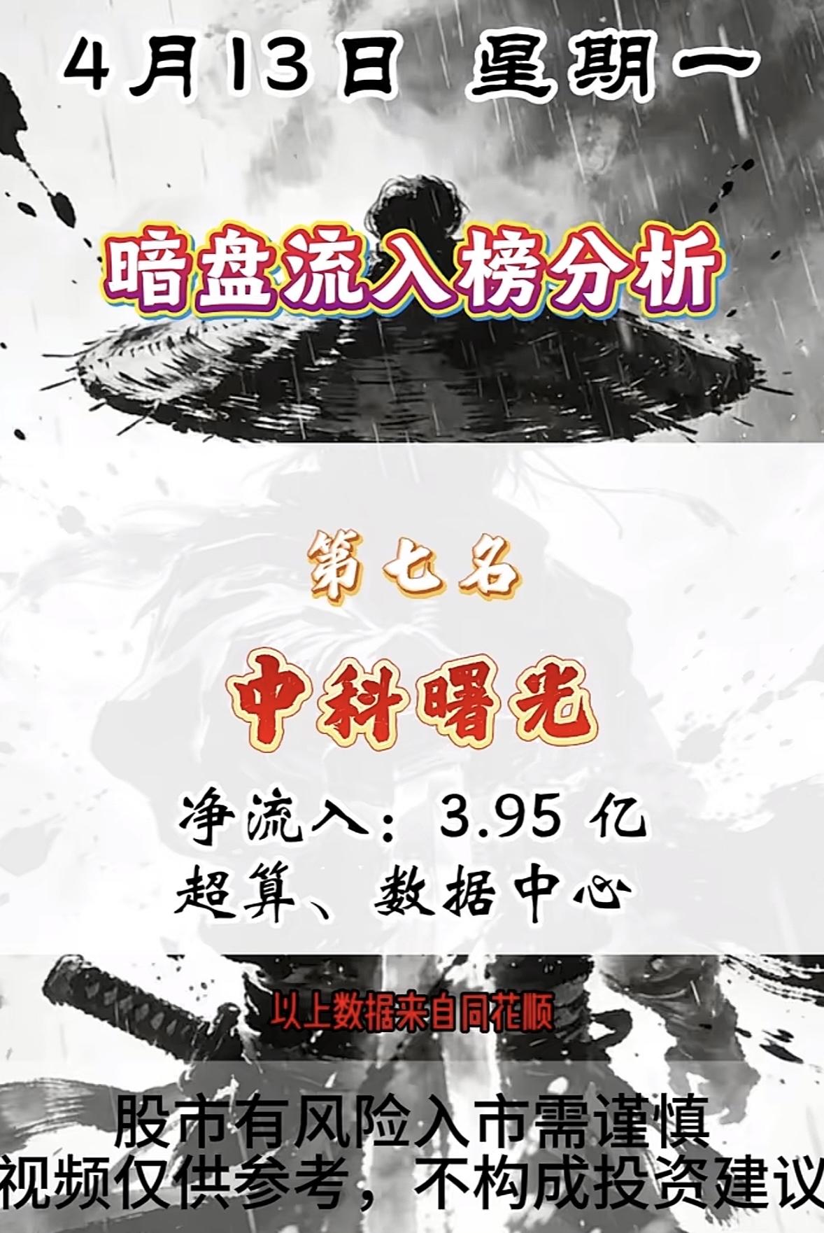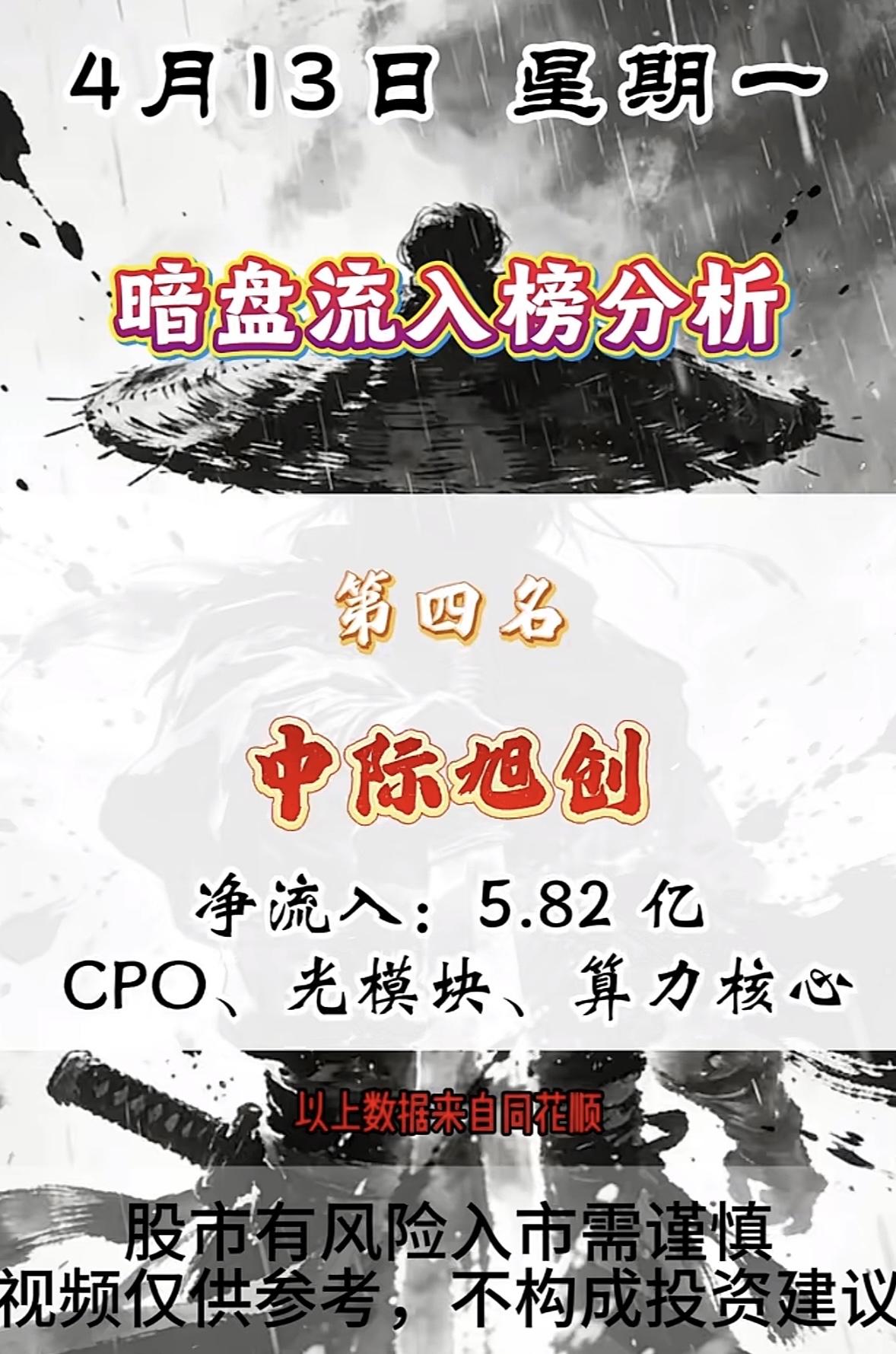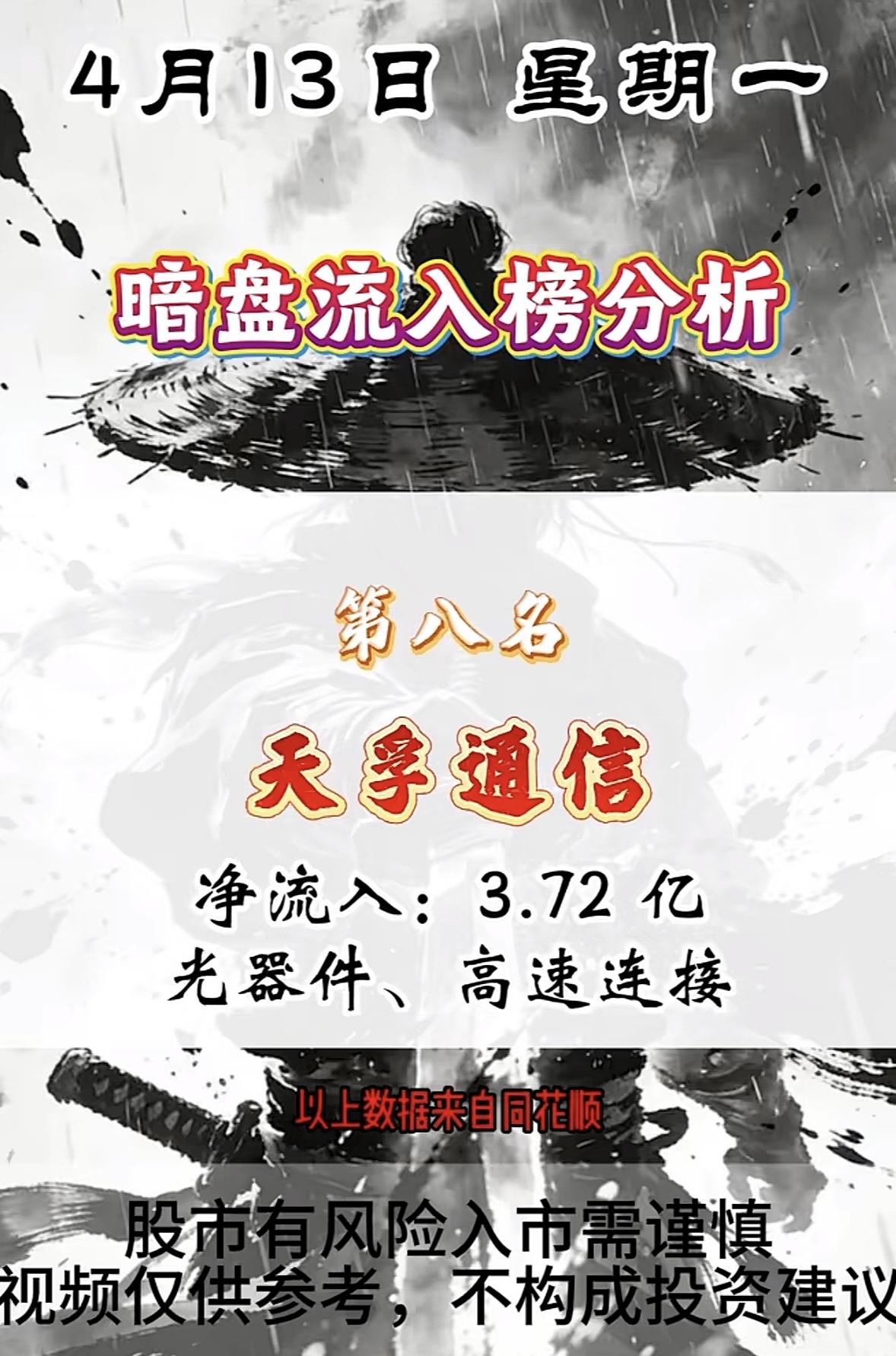 4月13日周一暗盘隔夜挂单排行榜揭晓 天孚通信净流入3.72亿,这数据可太亮眼