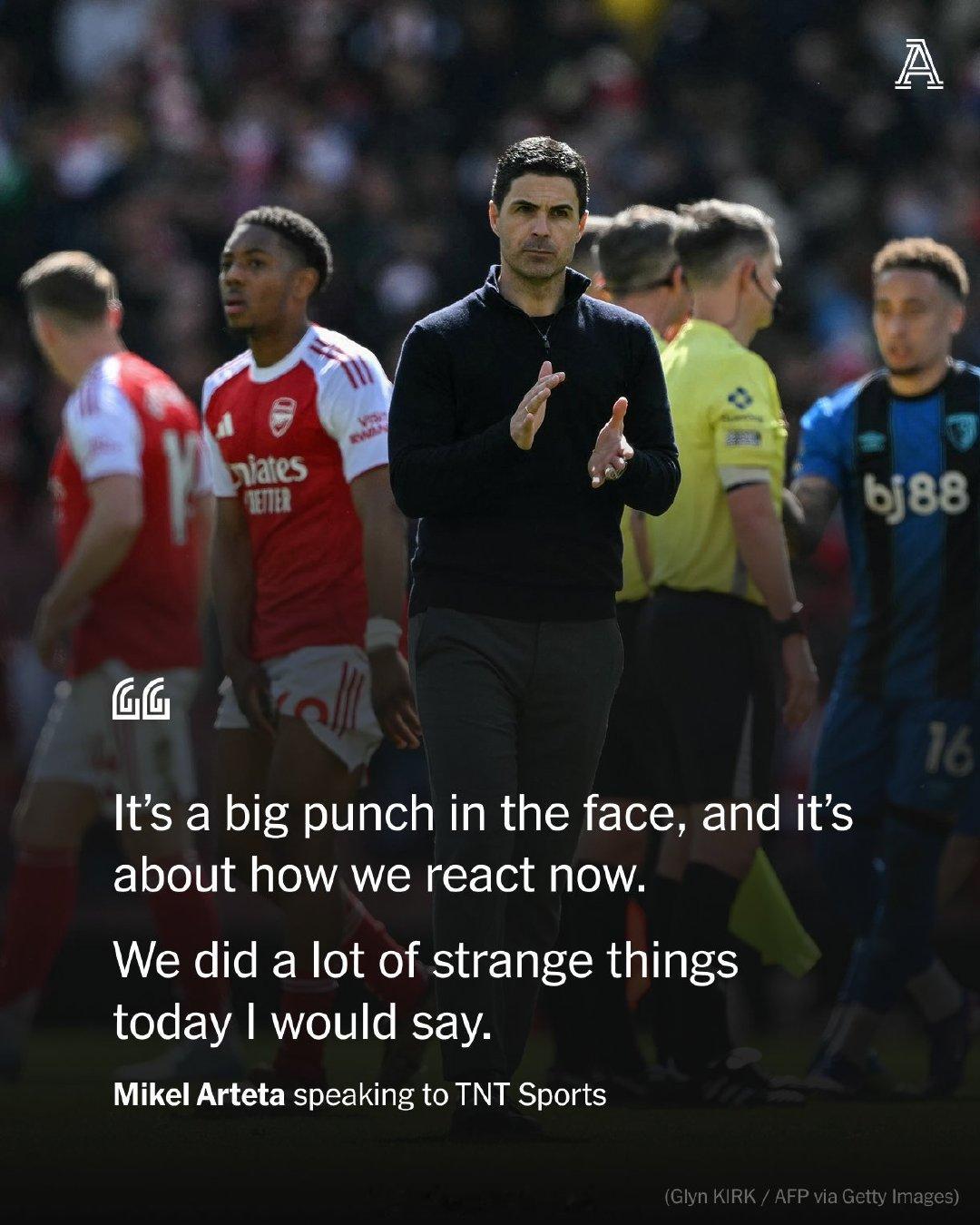 【阿尔特塔赛后言论:我们需要所有人保持健康】阿森纳1比2伯恩茅斯 阿森纳主帅阿尔