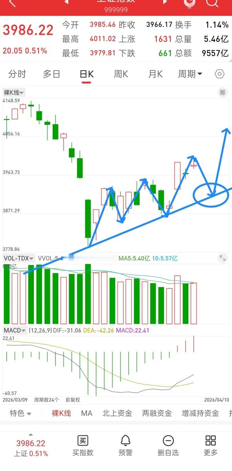 先说个人观点,美伊谈的好,下周一行情可能会往上冲一冲,但没有买点,后面还会下来,因为前顶4025以上都是套牢盘,上去就会被砸下来。