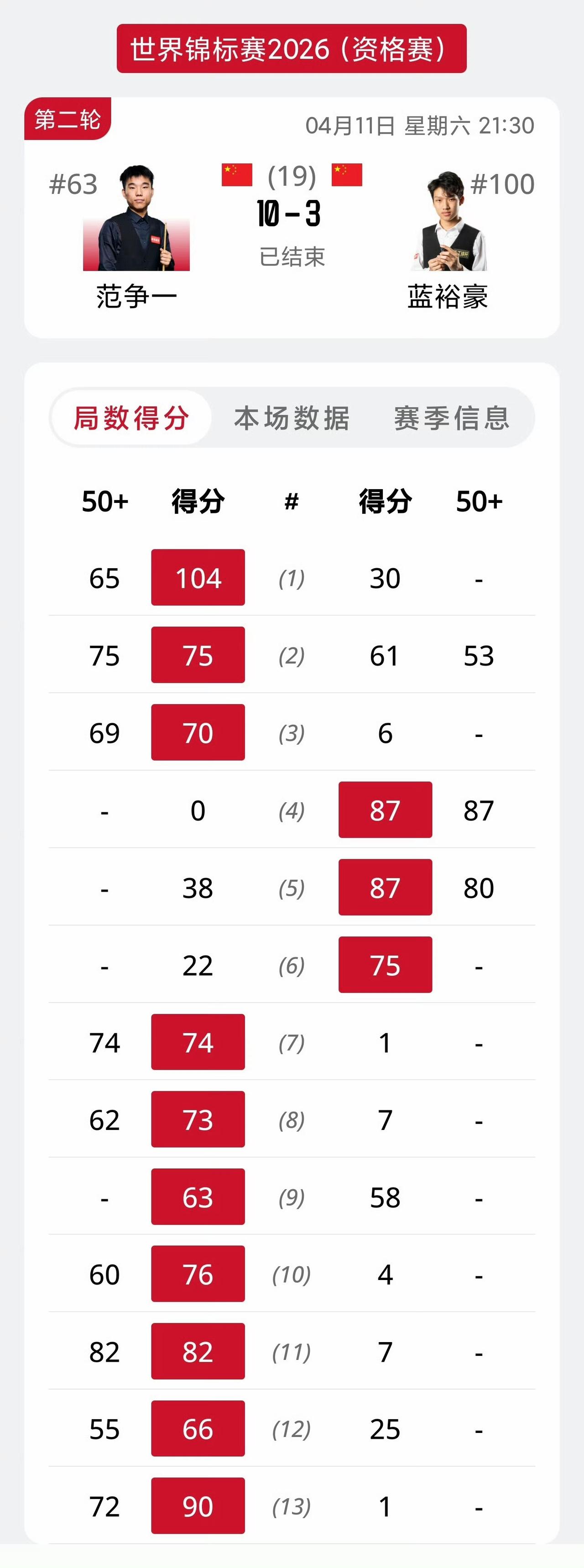 王信伯至今没拿到职业资格,总是差一步。两人均止步世锦赛资格赛次轮,王信伯2-10负于宾汉姆,蓝裕豪3-10不敌范争一。