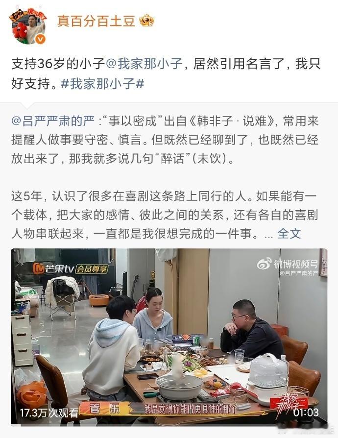 吕严上小子喜人全来了我家那小子吕严在节目里的真诚袒露,搭配喜人全员的暖心应援,直