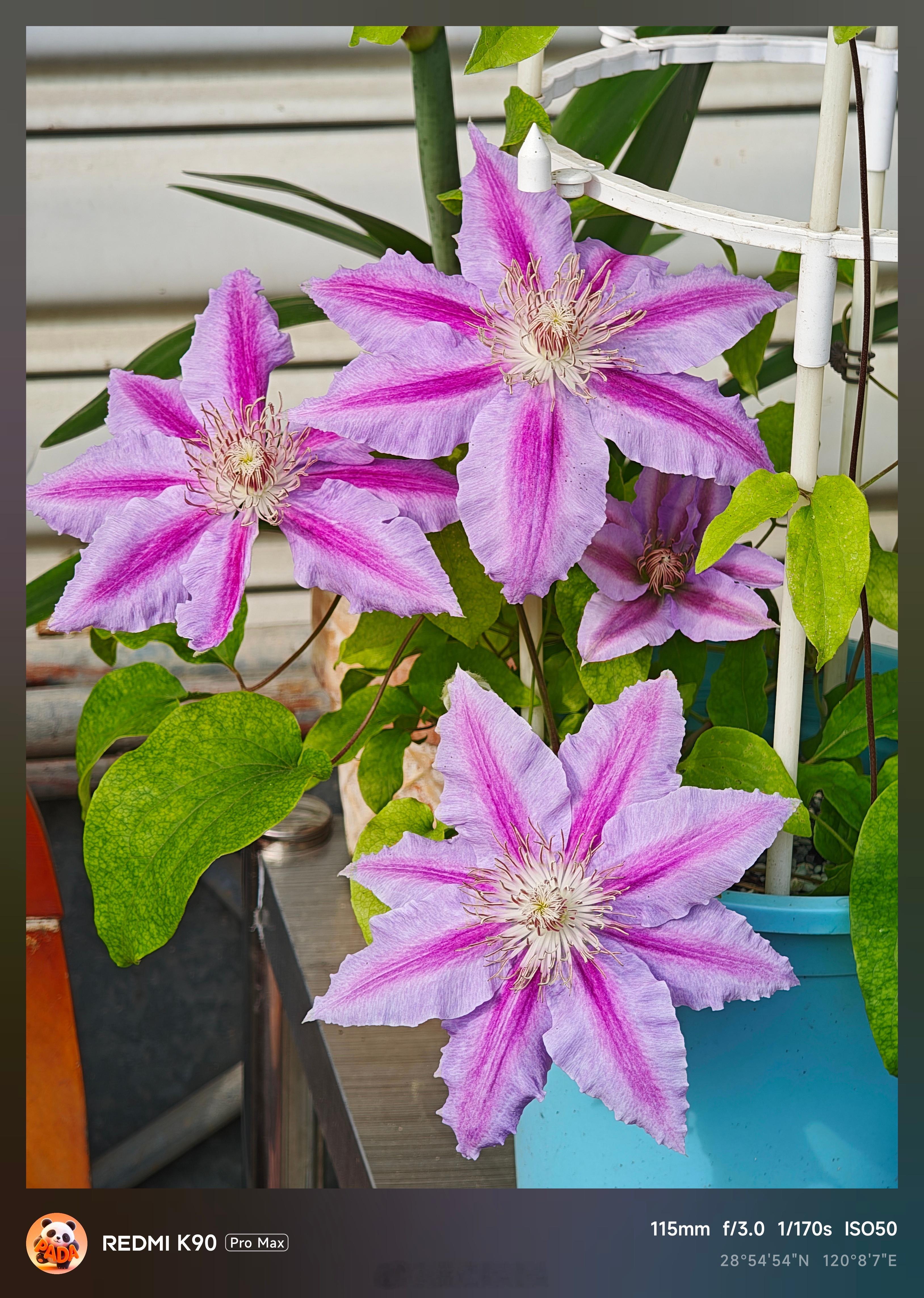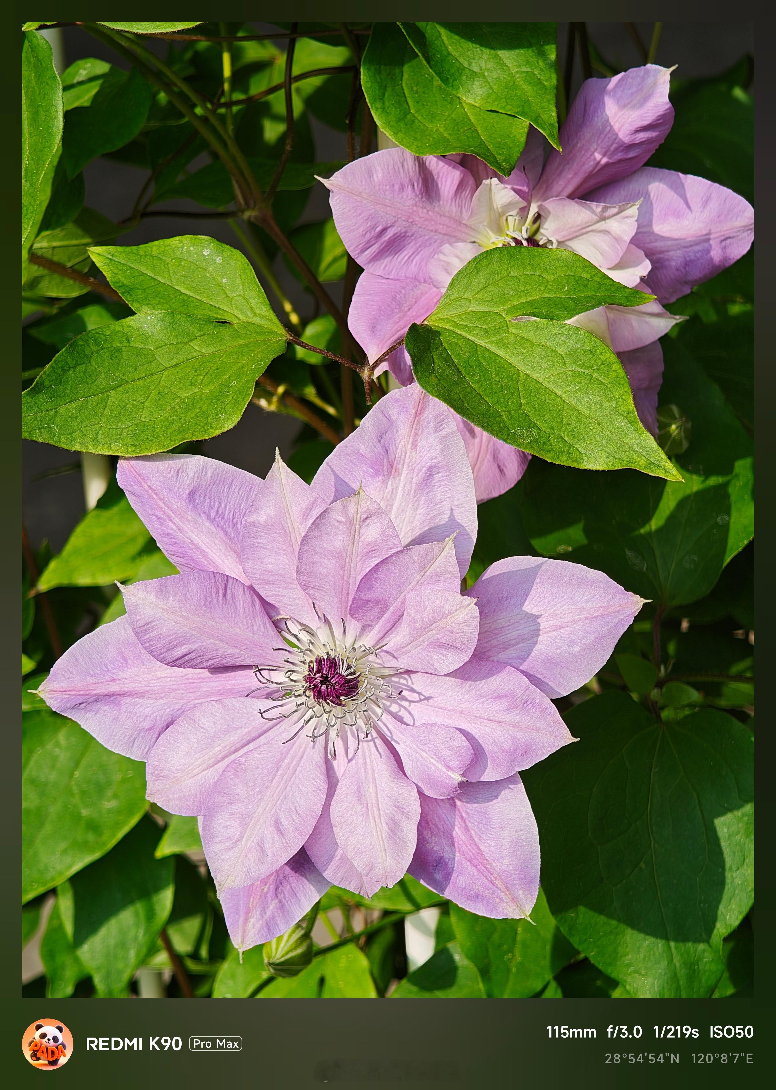 这个点出了一会会太阳!太难得了~来看看我用Redmi K90 Pro Max拍的花花们,太美啦~图1是昨天分享了的阿芙蕾,后面几棵是铁线莲,最后两个一个是天荷繁星,一个是毛地黄~