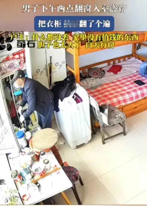 从视屏图片可以看出,这是一间出租屋,生活用品和冰箱,全都挤在这间狭小的空间里。这种租户即使有值钱的东西,也不可能会放在出租屋里。