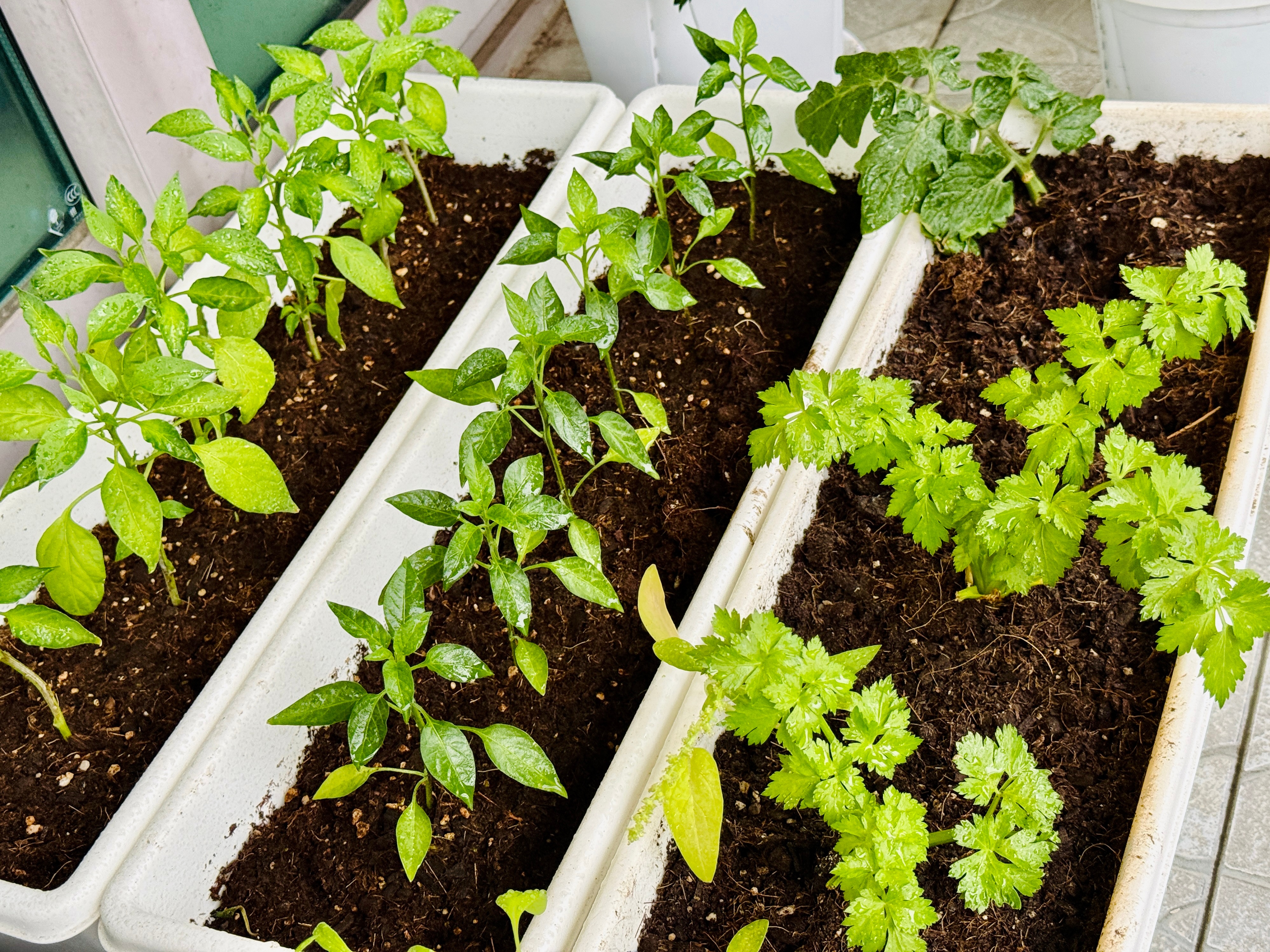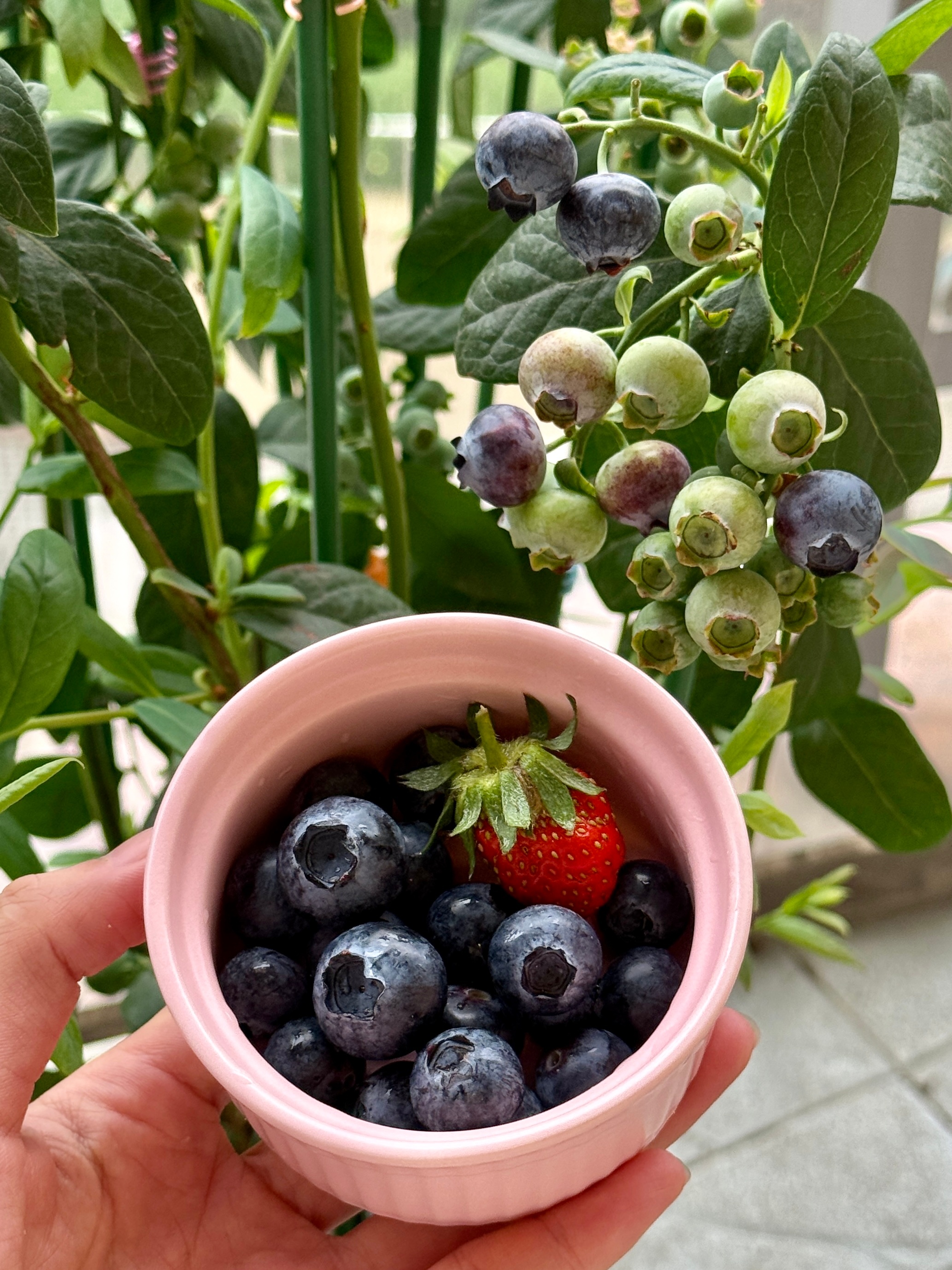 阳台种菜 每天最大的乐趣就是去阳台给它们浇水施肥~种了 小米辣、线椒、香菜、圣女果、草莓、香薄荷、柠檬薄荷、生菜、蓝莓、还有小葱和单独一片香菜过几天种上~要种好多好多的香菜🥰等以后退休了高低得整一大片菜园!(🍓这季节不好养了怕热🥲适合秋天种!🫐这季节好养喜欢晒太阳~☀️终于吃上第一波小果子啦~) 上海