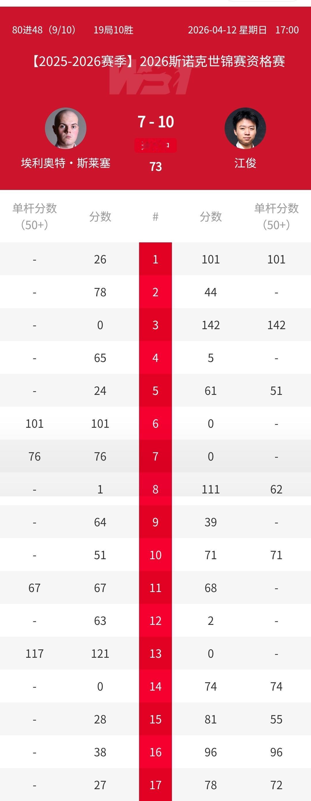 2026斯诺克世锦赛资格赛第三轮部分赛果,两名中国球员晋级审判轮,过程非常惊险。庞俊旭先拿到赛点,被对手逼到决胜局,而且对方先上手,不过庞俊旭也是大心脏,最终稳扎稳打逆转成功。另一位中国小将江俊6-7落后时连胜四局晋级。