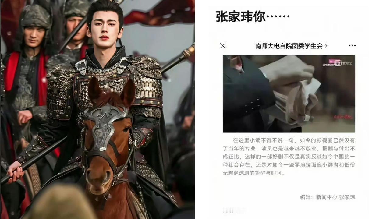 谁能想到,当年以“张家玮”之名在南师大痛批“零演技小鲜肉”的热血学生,如今竟成了网友口中的“粉底液将军”?这波历史的回旋镖,与其说是打脸,不如说是一场最真实的身份换位。
