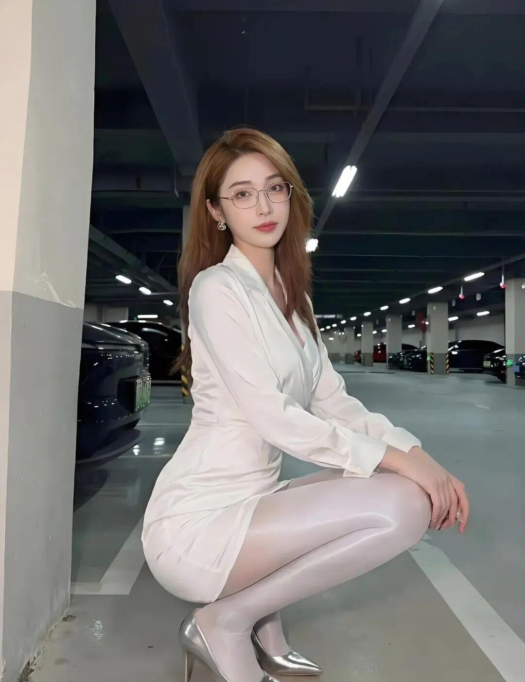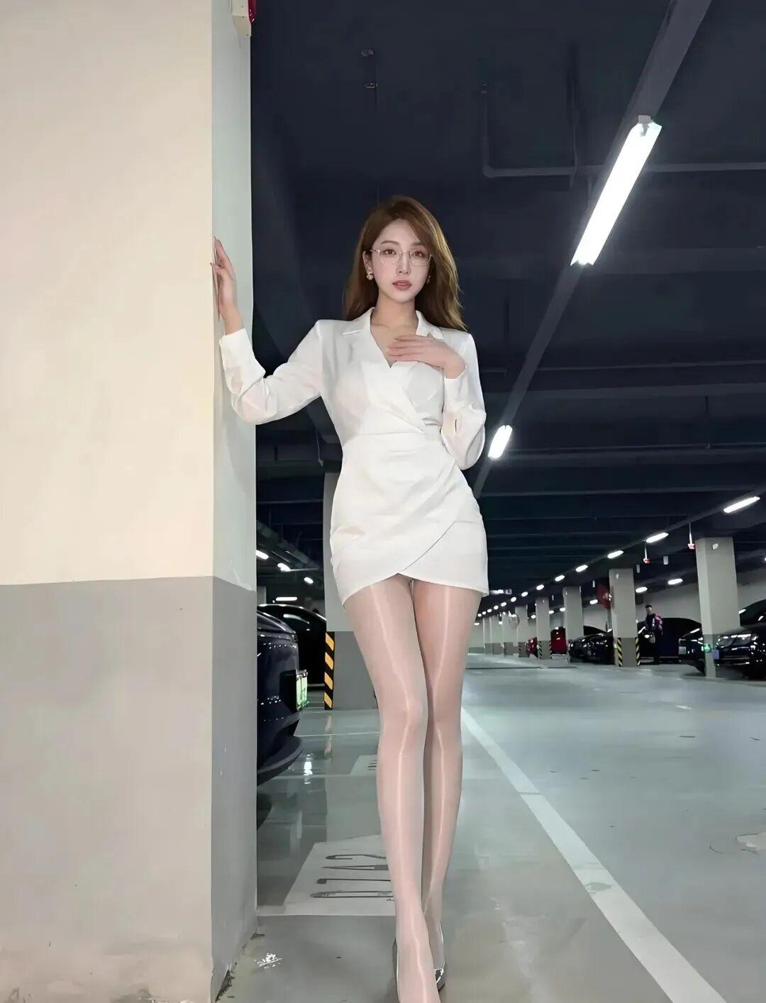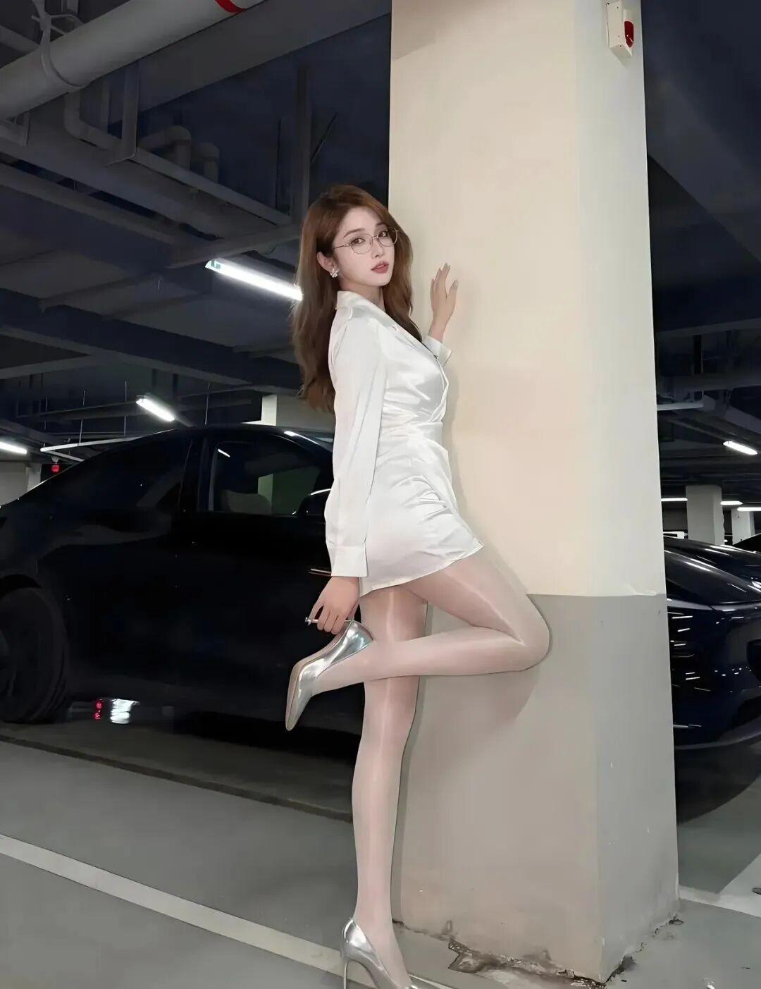 气质穿搭:白色衬衫+短裙+高跟鞋