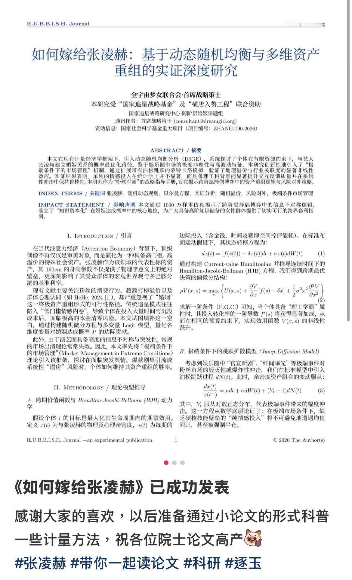 如何嫁给张凌赫论文发表了网友论文写的如何嫁给张凌赫