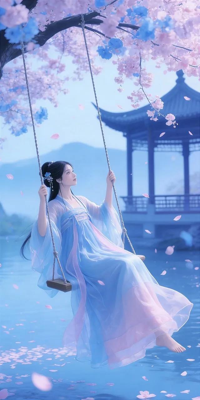 一袭流仙裙,漫入蓝紫梦幻花雨