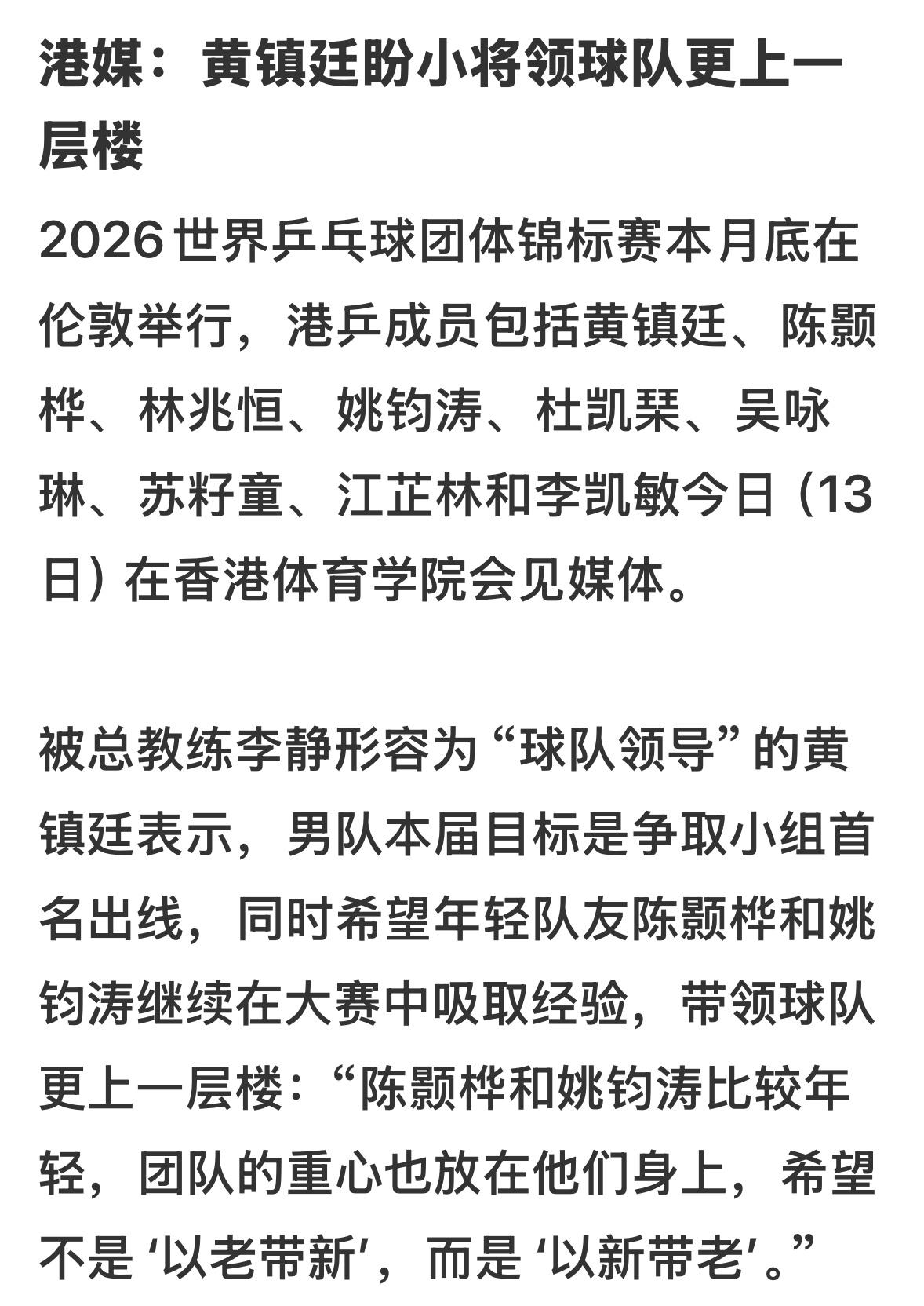 黄镇廷真幽默:盼望伦敦世乒赛出小组线,希望“不是以老代新 ”而是“以新代老!”