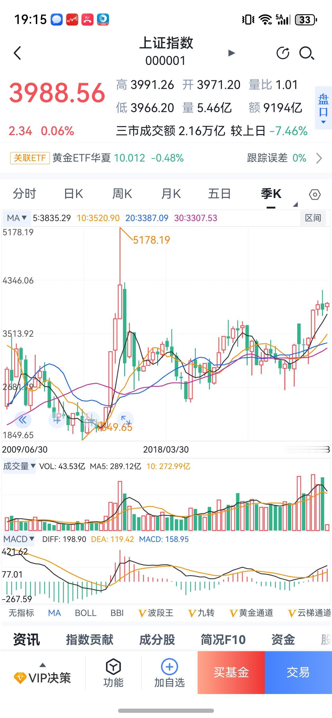 大盘月K线季K线,仍然是多头排列,趋势完美,静待主攻佳音。