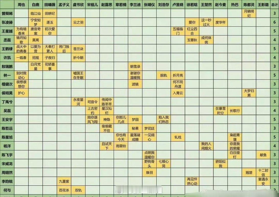 有网友制作了部分的小生跟小花之间的换乘表,真的宇宙的尽头就是互相合作,好像每个人都合作了一轮似的