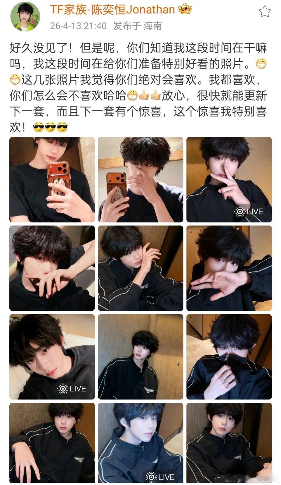 陈奕恒 最新营业!他说下一套照片会有惊喜耶