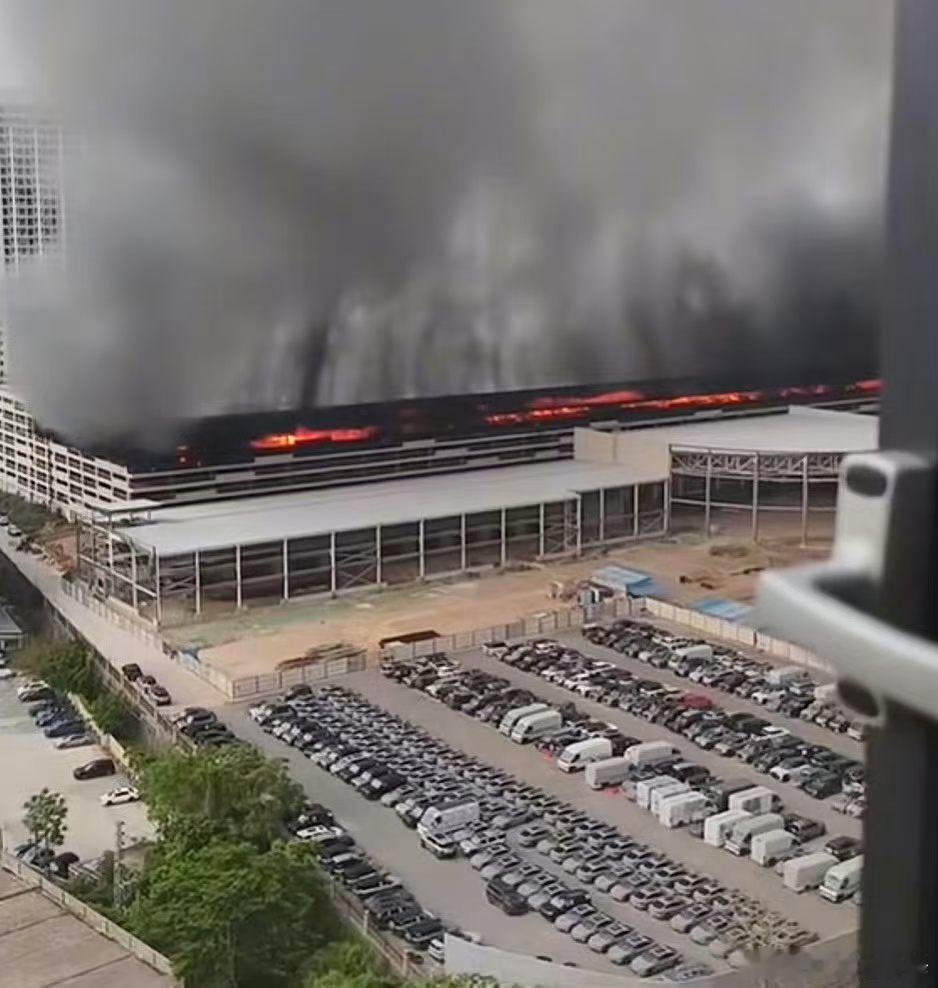 事发地点:深圳比亚迪坪山工厂(具体为坪山总部仓库区域)。· 起火时间:2026年4月14日凌晨。· 现场情况:· 画面中可见巨大的黑色浓烟直冲云霄,几乎遮蔽了天空,火势在厂房顶部燃烧,呈现出明显的红色火光。· 从拍摄视角看,火灾发生在大型工业厂房区域,现场停放着大量车辆,火势对周边建筑及环境造成了严重影响。· 官方回应:比亚迪官方已对此事作出回应,确认了火灾的发生,并表示正在全力配合相关部门进行处置。