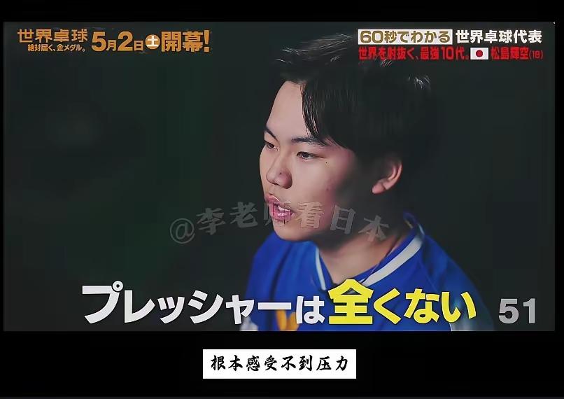 松岛只有18岁,还是一个少年,往好听了说,有雄心壮志,初生牛犊不怕虎,后生可畏;往难听了说,是太过高调,不够谦虚,虽然最近涨球厉害,在日本国内以及国际大赛中成绩突出,十分抢眼,但光凭喊口号和一时优异的表现就想战胜世界乒坛所有高手,打倒世界,未免有点夸张,未免有点狂妄。