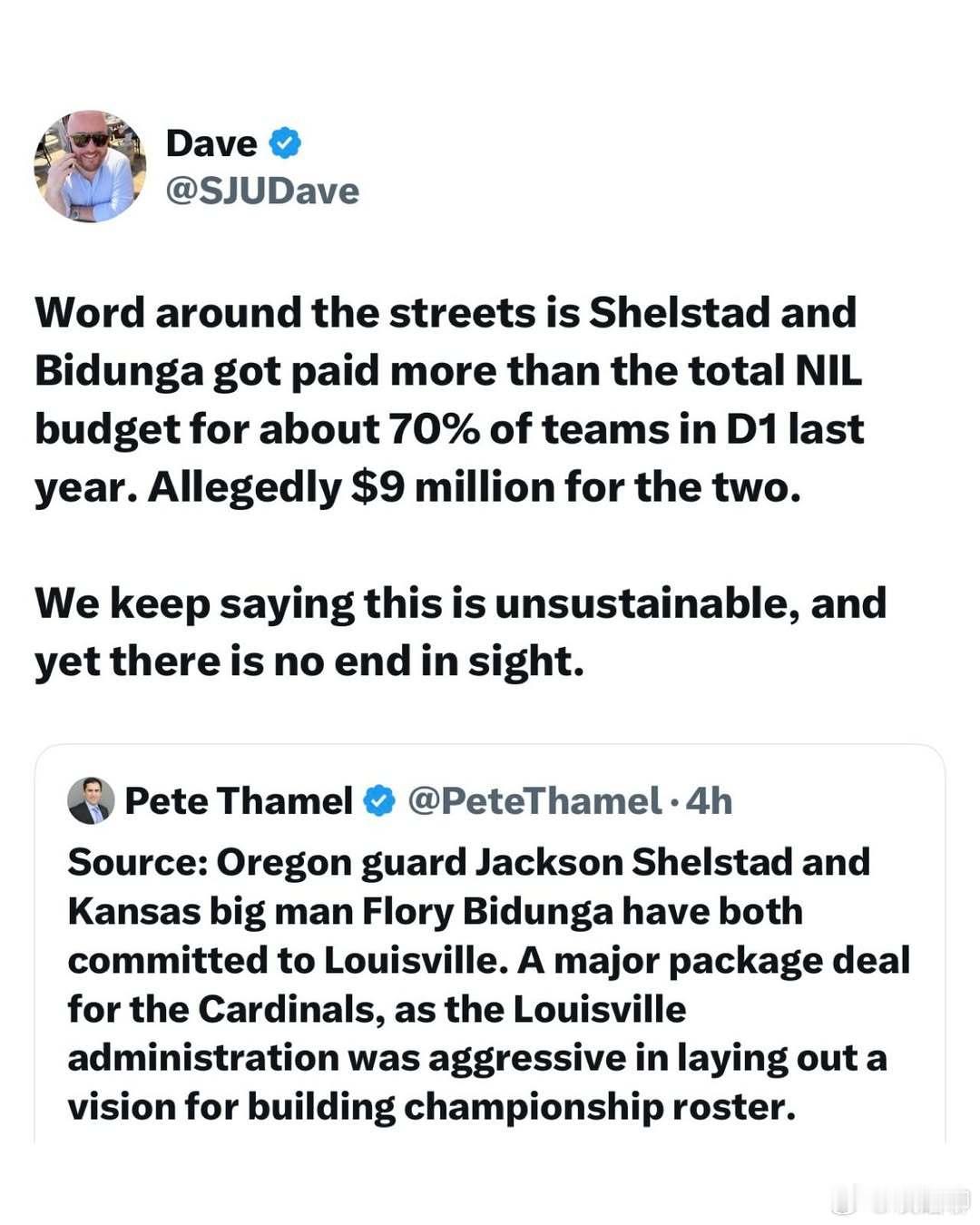 林葳的这赛季的队友谢尔斯塔德,转到新球队后和堪萨斯大学的比东加共享了一个900万美元的NIL,即使不是平分,也有小几百美元入手,这对于一名大学生来说是非常可观的收入,所以NCAA这两年吸引了非常多的欧洲青年球员参加。