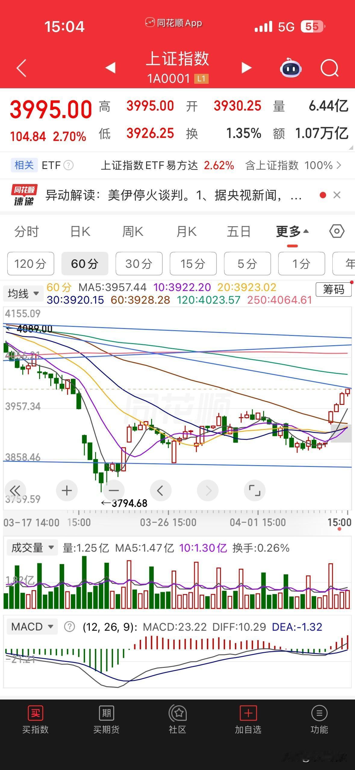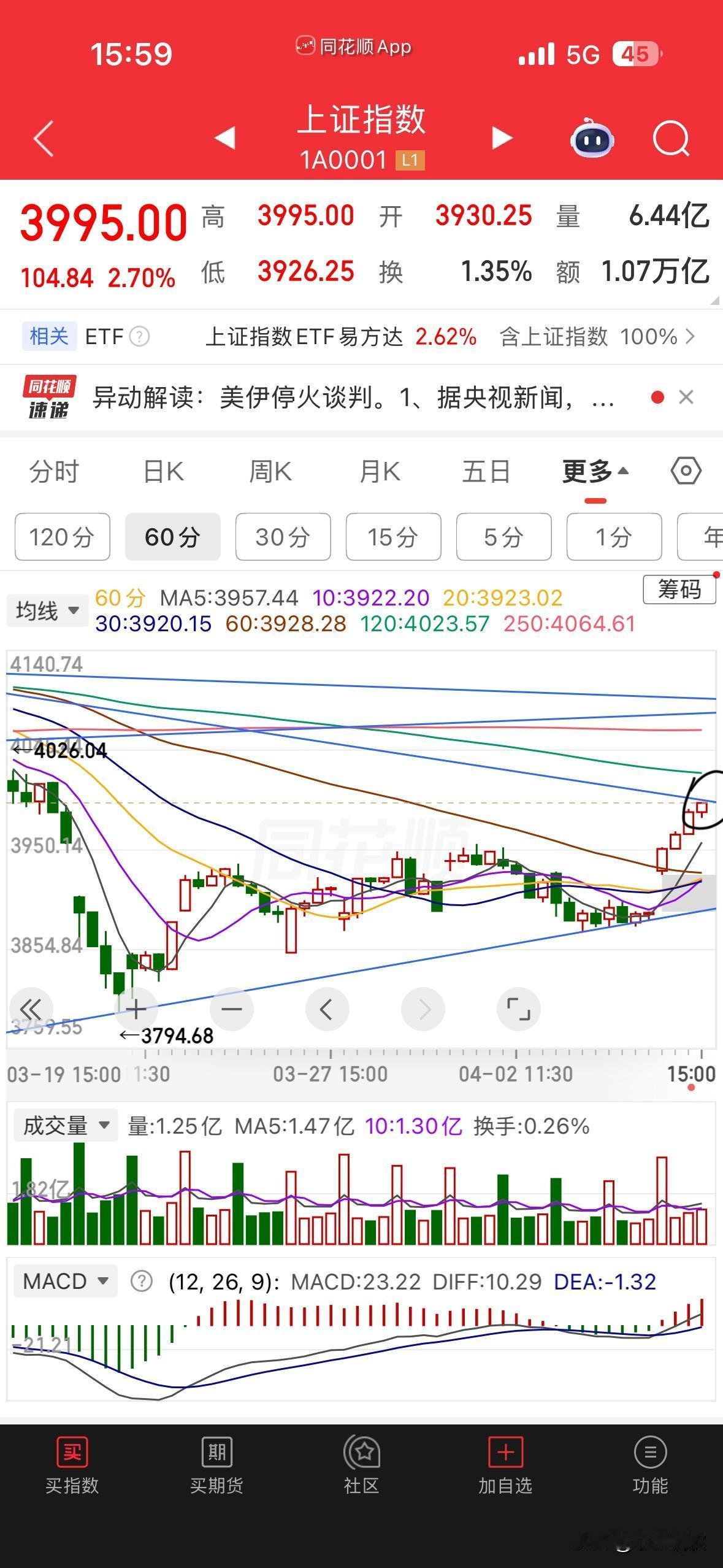 今天收盘就是最高点3995点,一根久违的远古巨阳,给散户们带来了信心,成交量放大了八千多亿,可见今天有多少3800点割肉的朋友勇敢入场了。