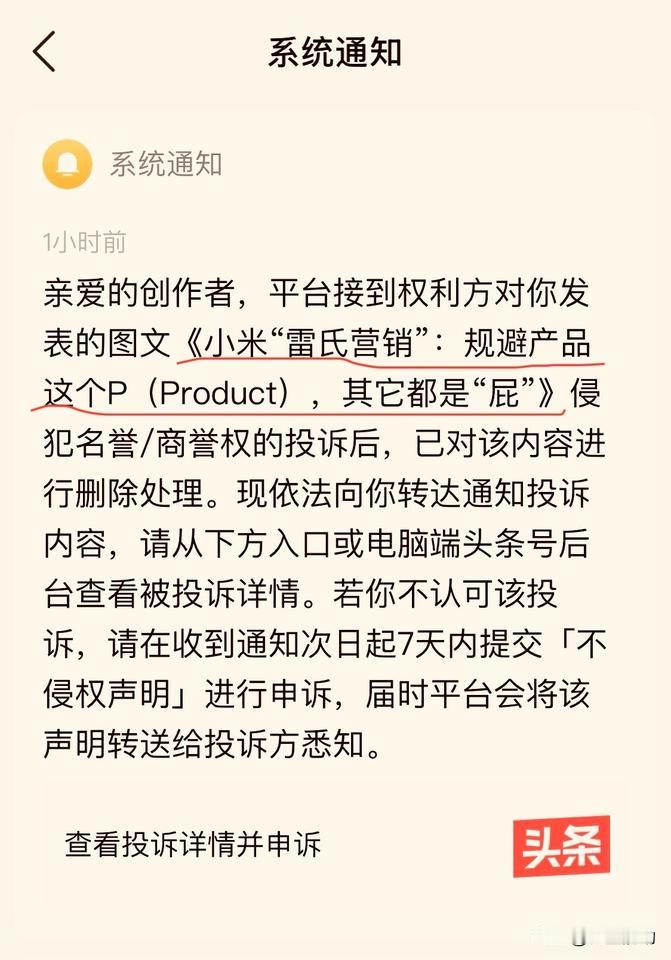 例如,我前几天发布的一篇文章,就是提醒它要把产品质量和安全放第一位,结果很快就被其强大的法务力量投诉下架。