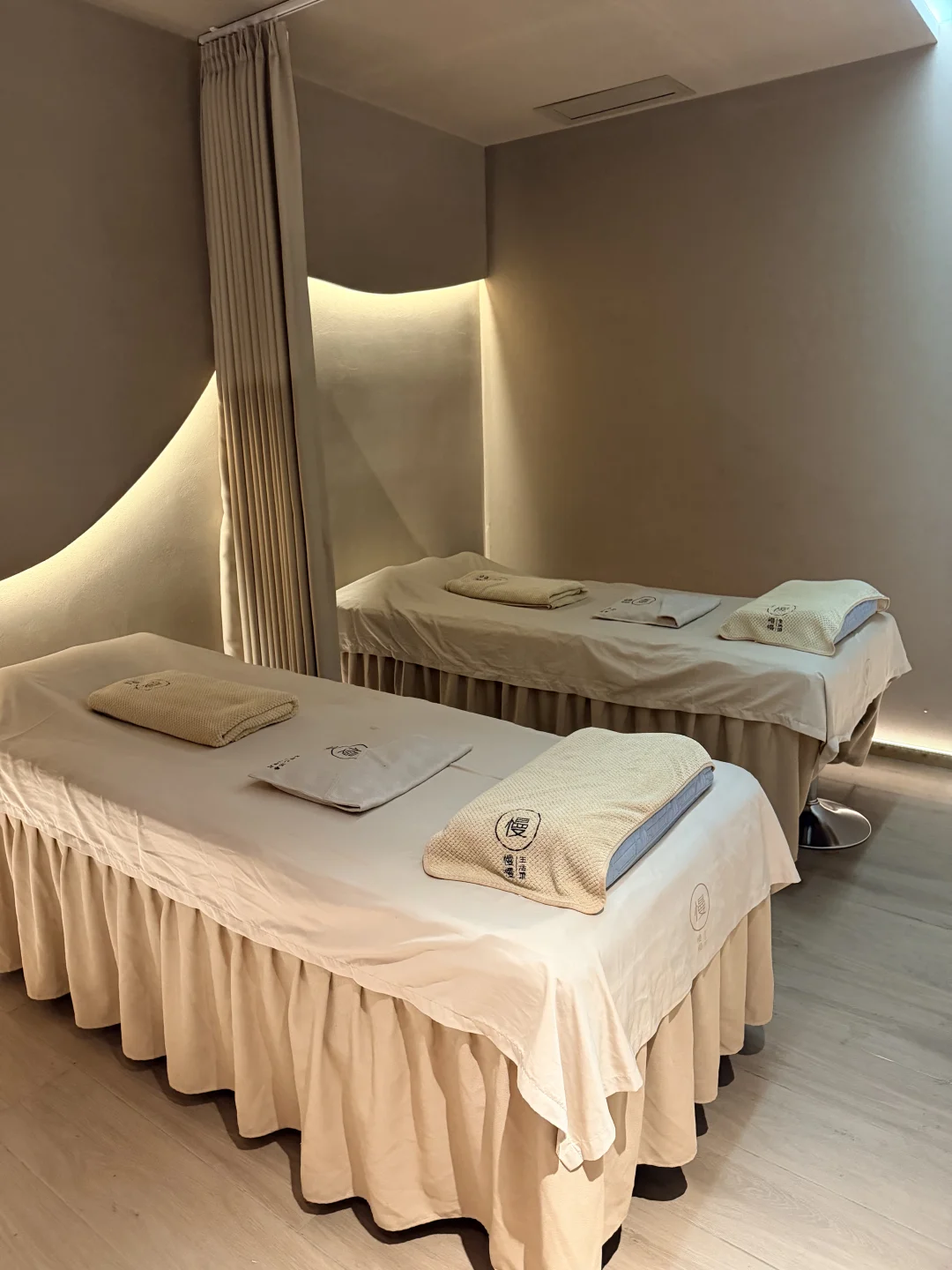 新中式原木风太戳了,暖光裹着淡淡的精油香,耳边是轻柔的轻音乐,连呼吸都跟着慢下来。