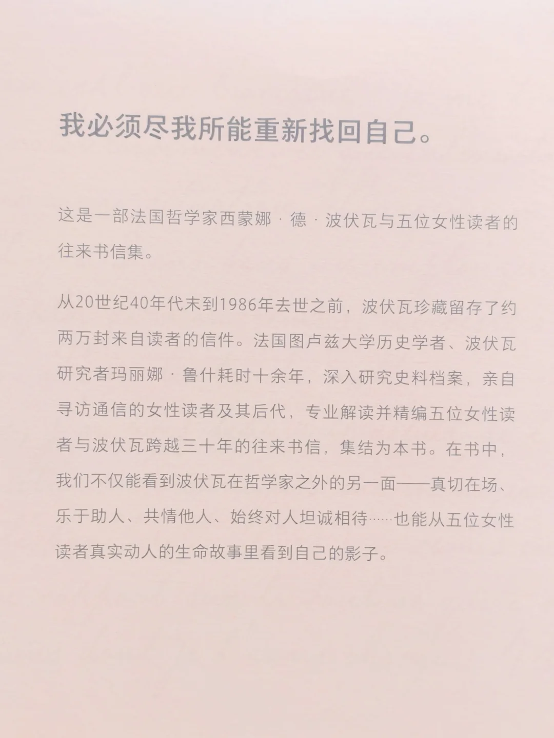 法国历史学者玛丽娜·鲁什耗时十余年,从波伏瓦珍藏的两万封读者来信中,精编出五位普通女性与她跨越三十年的142封往来书信,没有晦涩理论,只有最赤诚的女性对话,最戳心的灵魂共鸣。