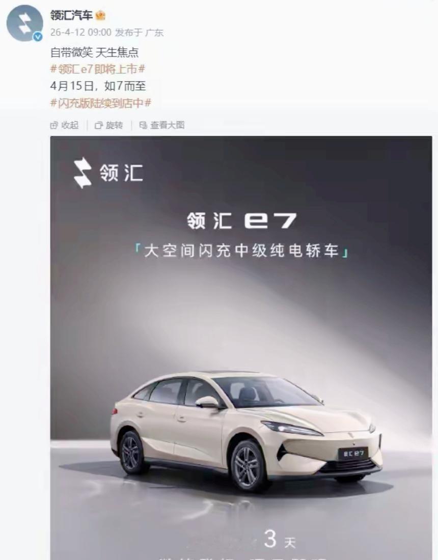 这车叫领汇e7,比亚迪新搞的牌子,4月15号正式上。不卖给咱们老百姓家用,专门给网约车、出租车和公务车队。第一批展车已经送到全国127个城市,价格大概9万到10万出头。