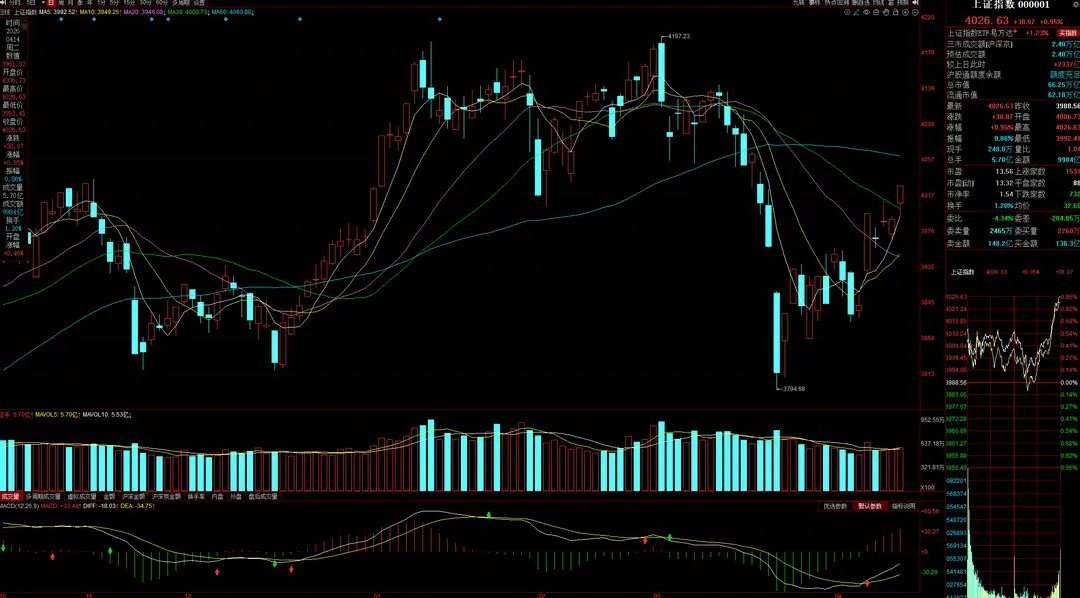 4月15日A股策略:国办重磅发文!美伊冲突迎首次谈判!主力追高加仓!专注A股市场每日实战操作,让散户投资不迷路!如果你不是长线投资者,想在A股市场中活下来,那么必须明白,周密的布局计划只能有个好的开始,严格的操盘纪律才能结出丰硕的果实!大势研判:周二A股放量上涨,成交量从2300亿回升至2.4万亿,逐步回归正常水平。技术形态上,大盘在30日线下方连续震荡整理几日后,周二直接高开站上30日线,完成短期突破。不过当前市场仍运行在20日线与60日线构筑的区间震荡格局中,周二的中阳反弹并未改变中短期整体趋势。另外需要留意,本轮反弹已逐步逼近60日线压力位,该位置聚集大量套牢盘,想要轻松突破难度较大,大盘大概率在60日线附近继续震荡整固。盘面跟踪:周二沪深两市个股涨多跌少,上涨家数超3700家,下跌约1500家,整体赚钱效应良好。板块资金流向方面,锂电池板块全面走强,能源金属、动力电池等相关细分领域领涨两市。此外,存储芯片、半导体元件等AI算力硬件方向表现同样强势。跌幅榜上,以油气开采为代表的美伊冲突受益顺周期板块,周二出现大面积逆势调整。近期主线热点多数跟随大盘走强,表现强于指数,仅光伏、化工、油气开采逆势回调,整体市场格局依旧健康。消息面跟踪:1、4月14日央行发布公开市场买断式逆回购招标公告,为维持银行体系流动性充裕,定于2026年4月15日开展5000亿元买断式逆回购操作,期限6个月(183天),采用固定数量、利率招标、多重价位中标方式。2、伊朗驻巴基斯坦大使馆官员表示,美伊下一轮谈判有望在本周或下周初举行。此前消息称,美伊代表团将于本周晚些时候在巴基斯坦伊斯兰堡展开磋商,这也是美伊冲突以来的新一轮重要接触。3、国办发文明确,对创新程度高、临床价值大的高水平创新药,支持在上市初期制定契合高投入、高风险特征的价格,并在一定时期内保持价格相对稳定。市场资金面:周二机构与游资操作再度出现分歧。机构买盘温和释放,卖盘有所萎缩,较周一流入流出持平的状态转为中度净流入,开始追高加仓!游资买盘小幅收缩,卖盘明显增加,较周一小幅净流入转为小幅净流出,高抛力度有所加大。板块资金动向来看,主线热点中机构与游资并未形成一致加仓或减仓方向。机构大幅加仓锂电池,小幅加仓林哥;小幅减仓光伏。游资仅小幅加仓液冷服务器,中度减仓林哥,小幅减仓云计算、创新药与锂电池。由于机构和游资并未集中发力其他非主线方向,当前市场主线暂不具备切换条件。
