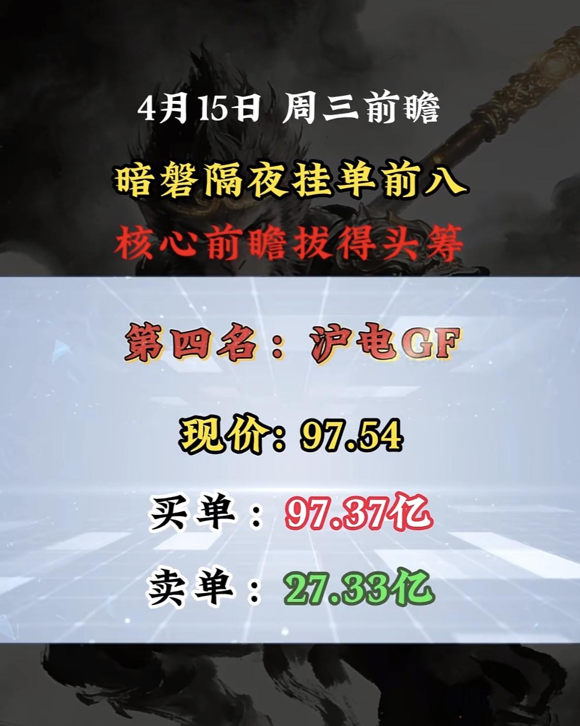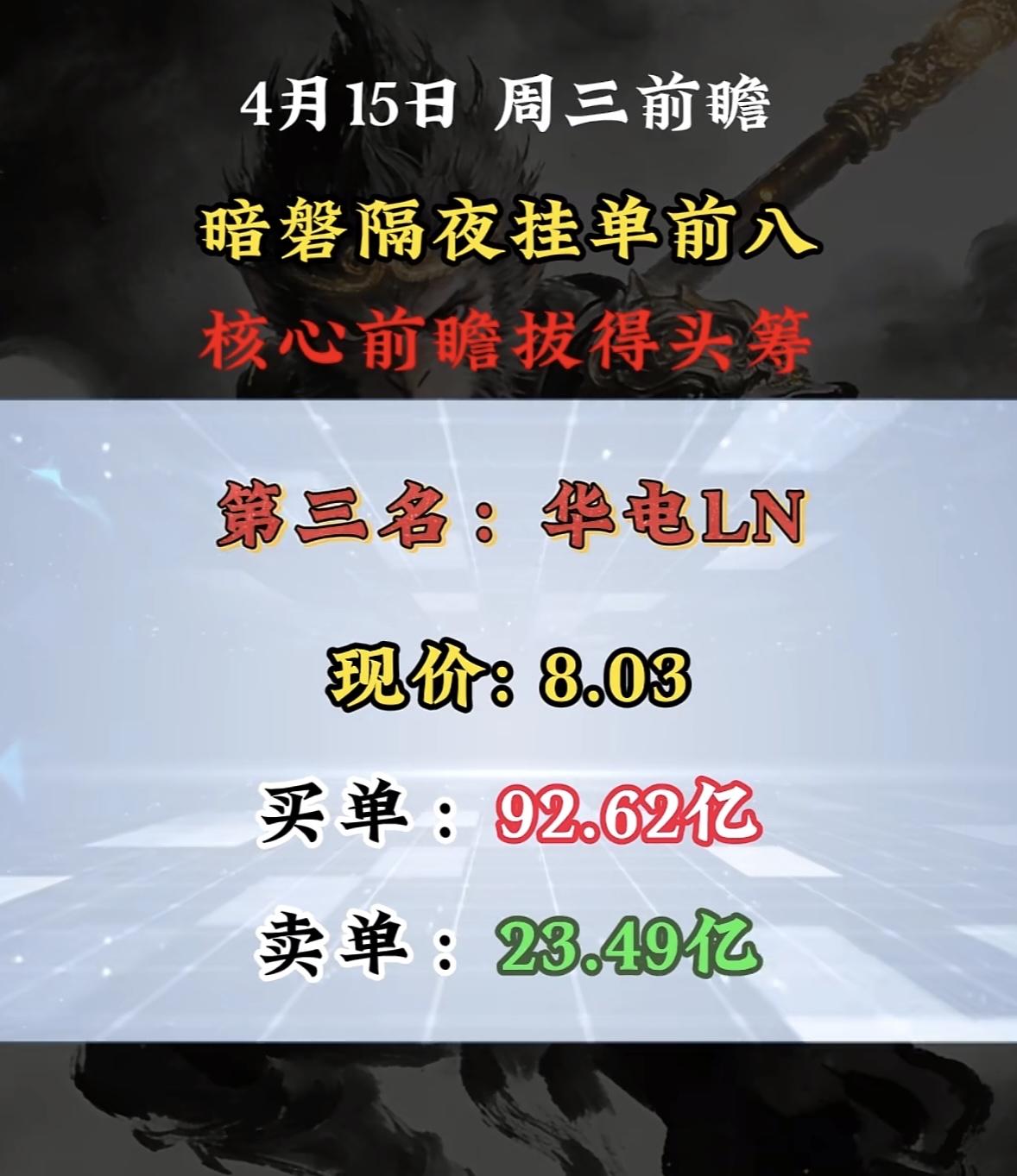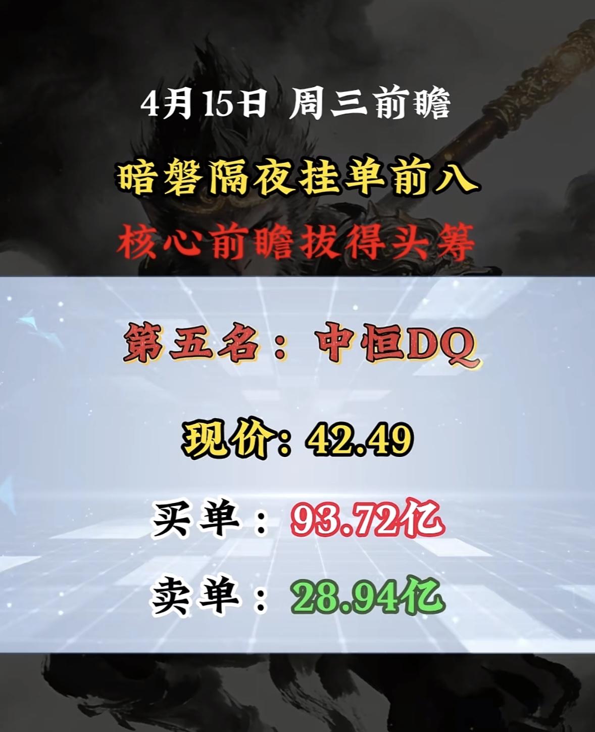 4月15日周三暗盘隔夜挂单排行榜揭晓